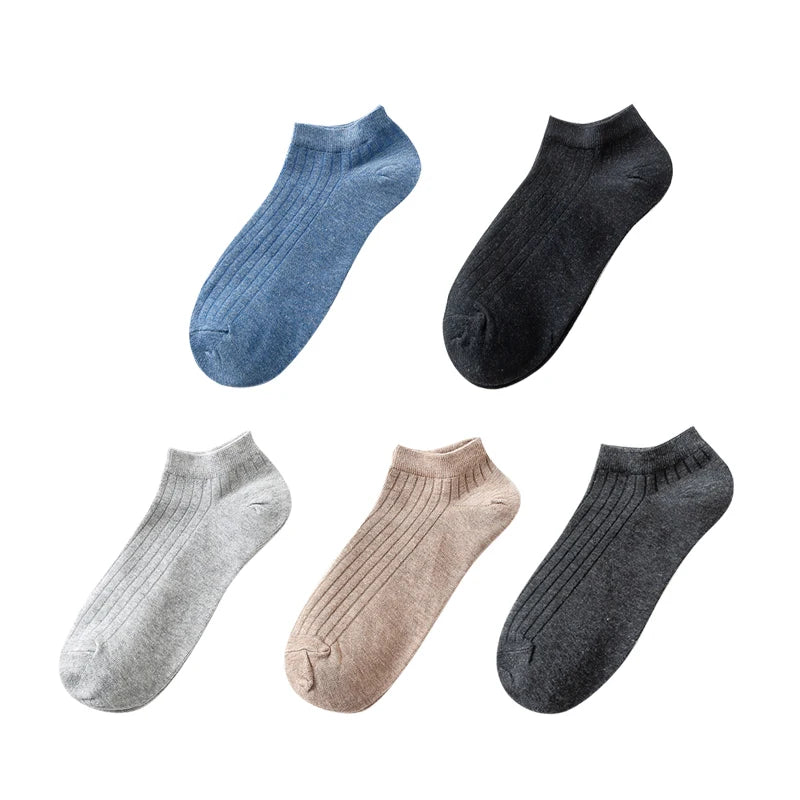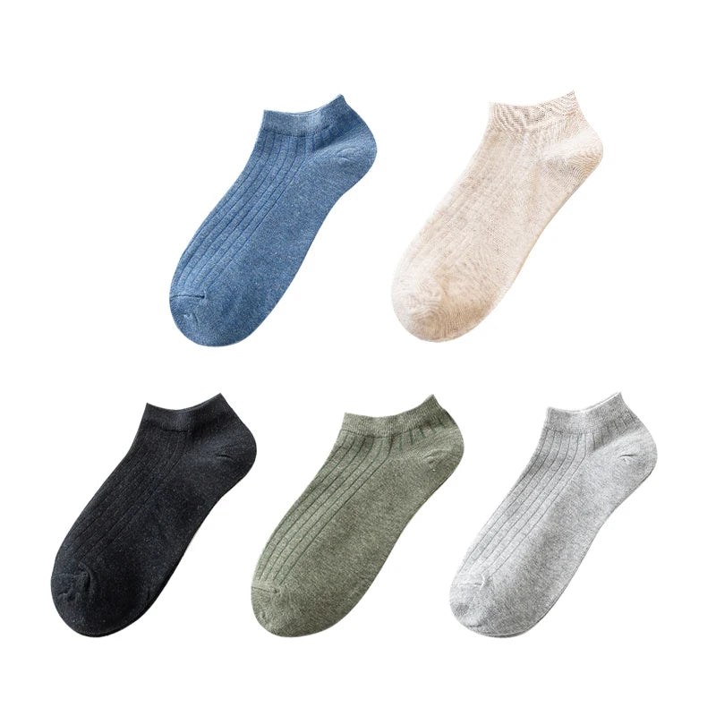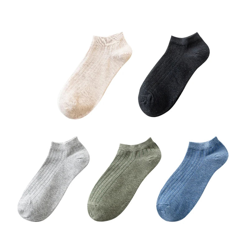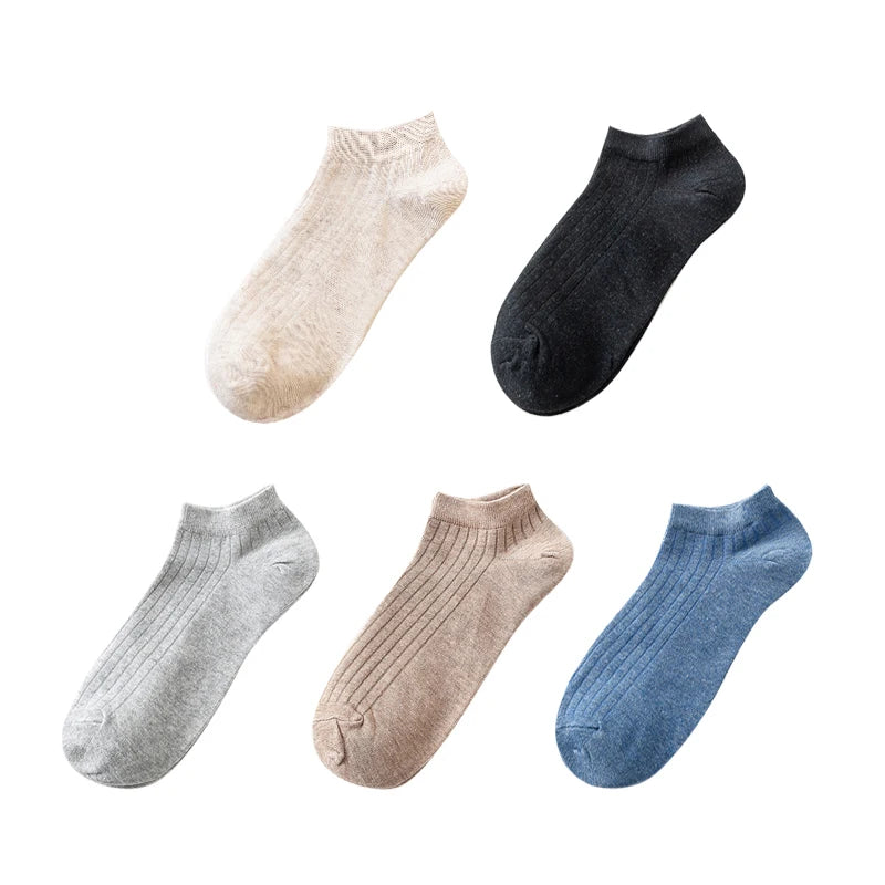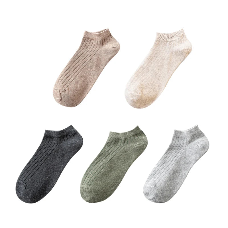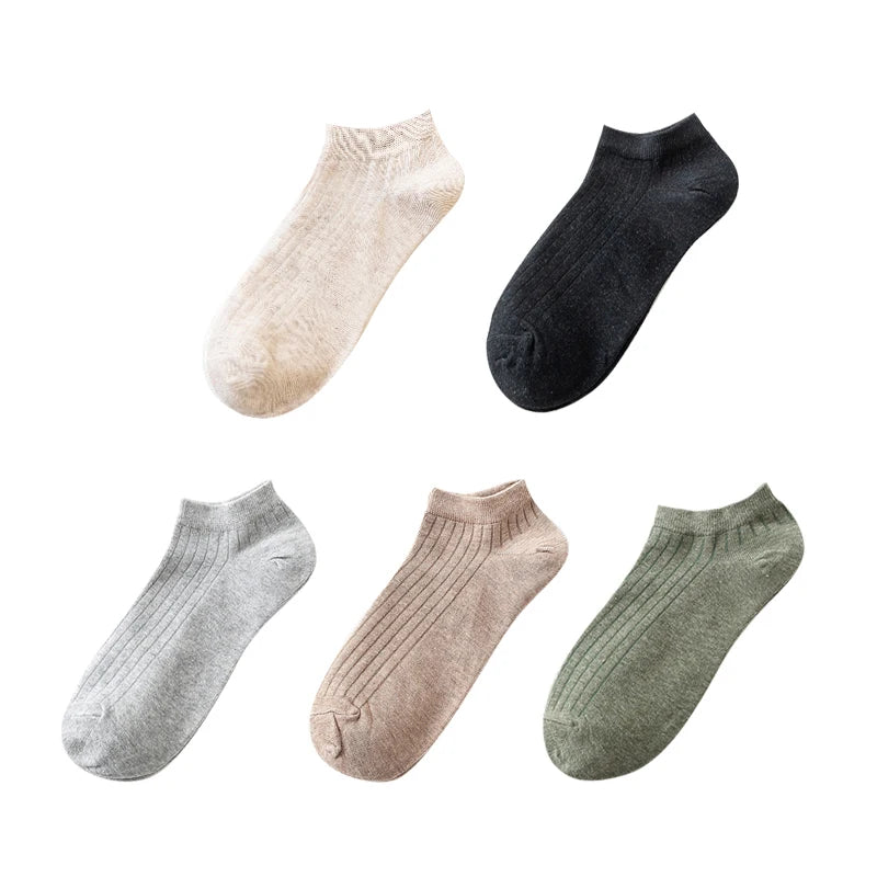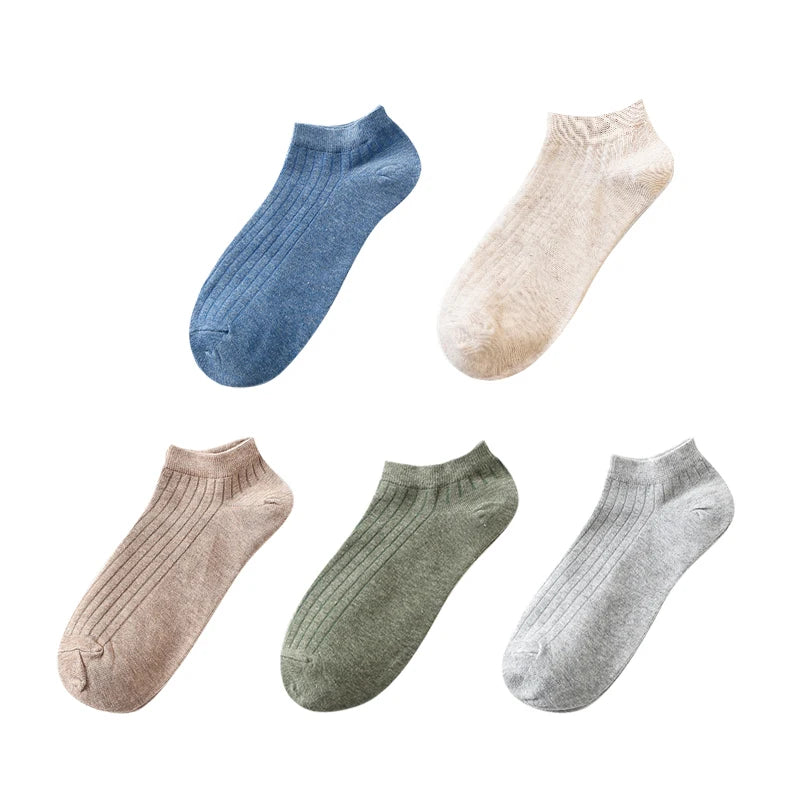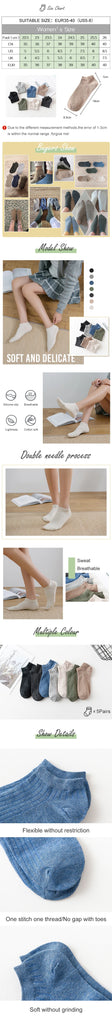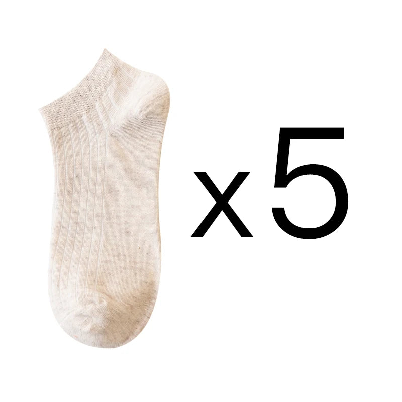 • 5 Pairs Women's Cotton Ankle Socks Pack - Casual, Breathable, Solid, Striped, Comfortable Short Socks