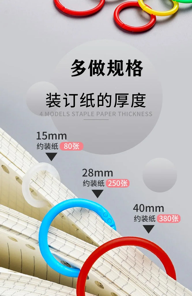 50 Pcs Plastic Ring Binder Hoops for Loose-Leaf Albums & Office Binding, 15-40mm Size Options