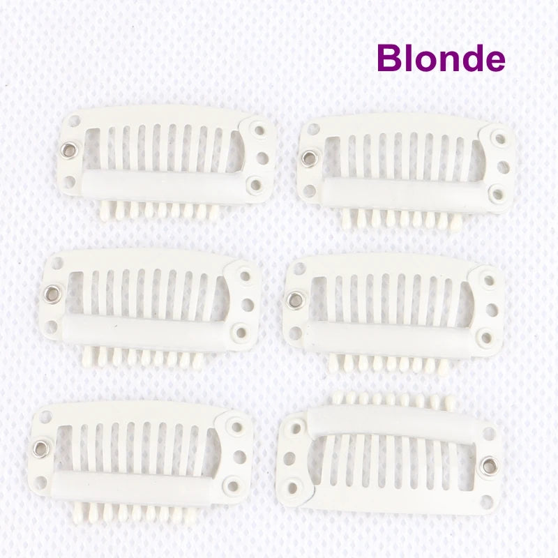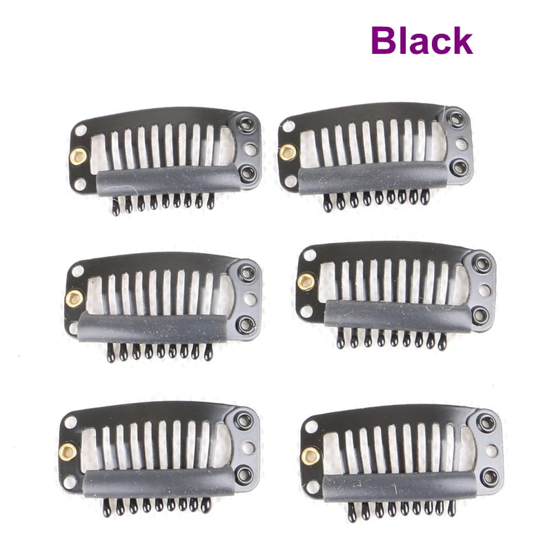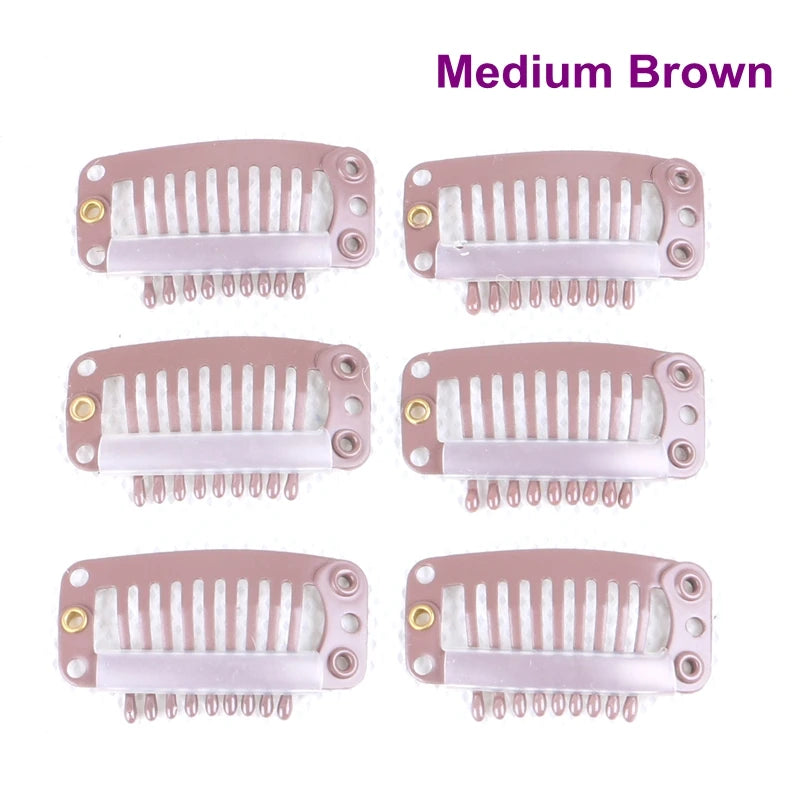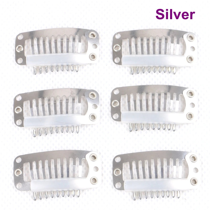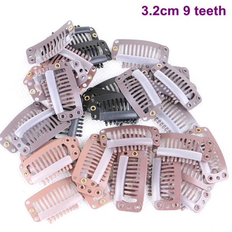 50 Hair Extension Clips 3.2cm 9 Teeth Stainless Steel Silicone Snap (Black, Dark/Mid/Light Brown, Blonde, Silver)