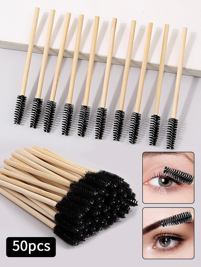 50-Pack Eco Bamboo Mascara Brushes Set - Lash Wands & Combs for Extensions