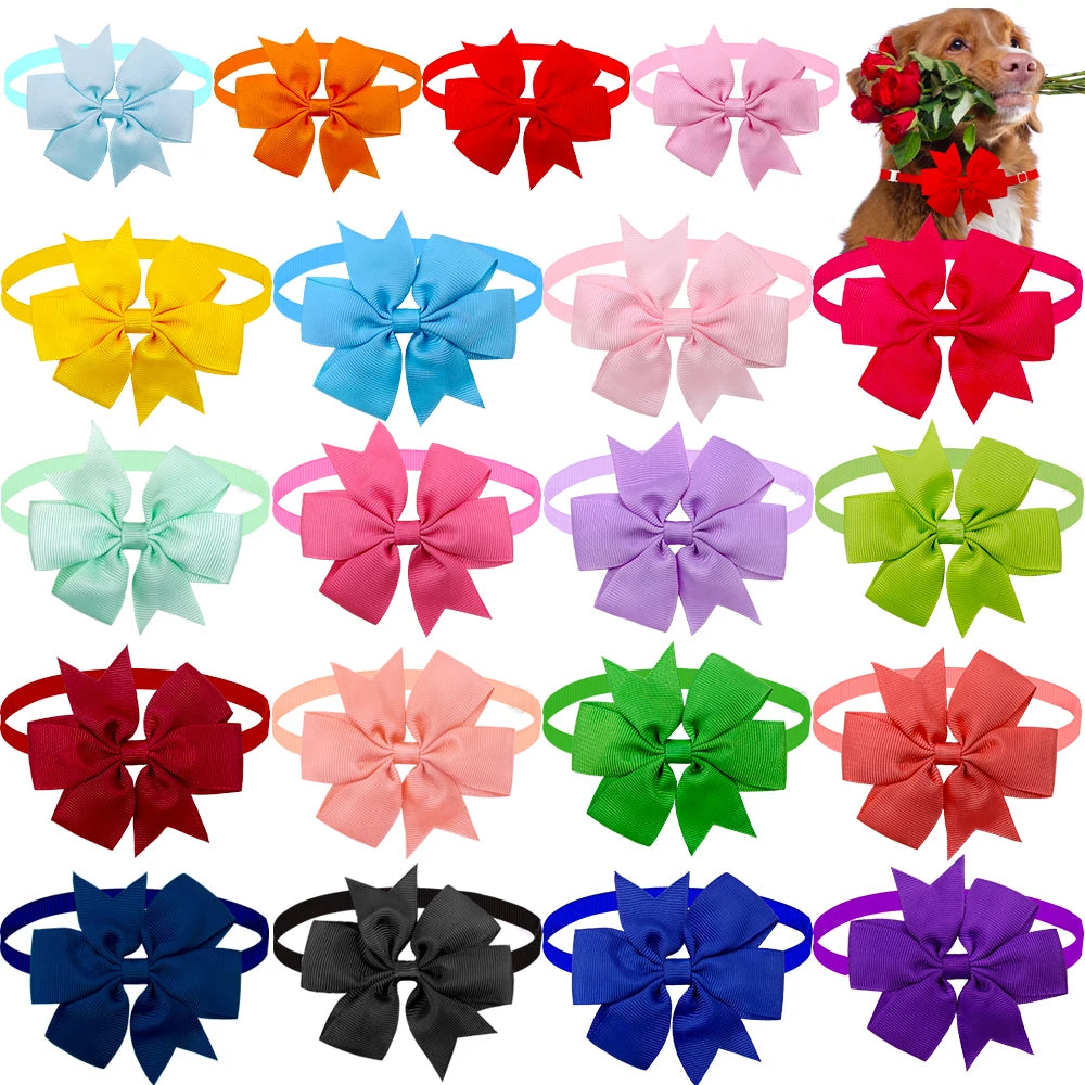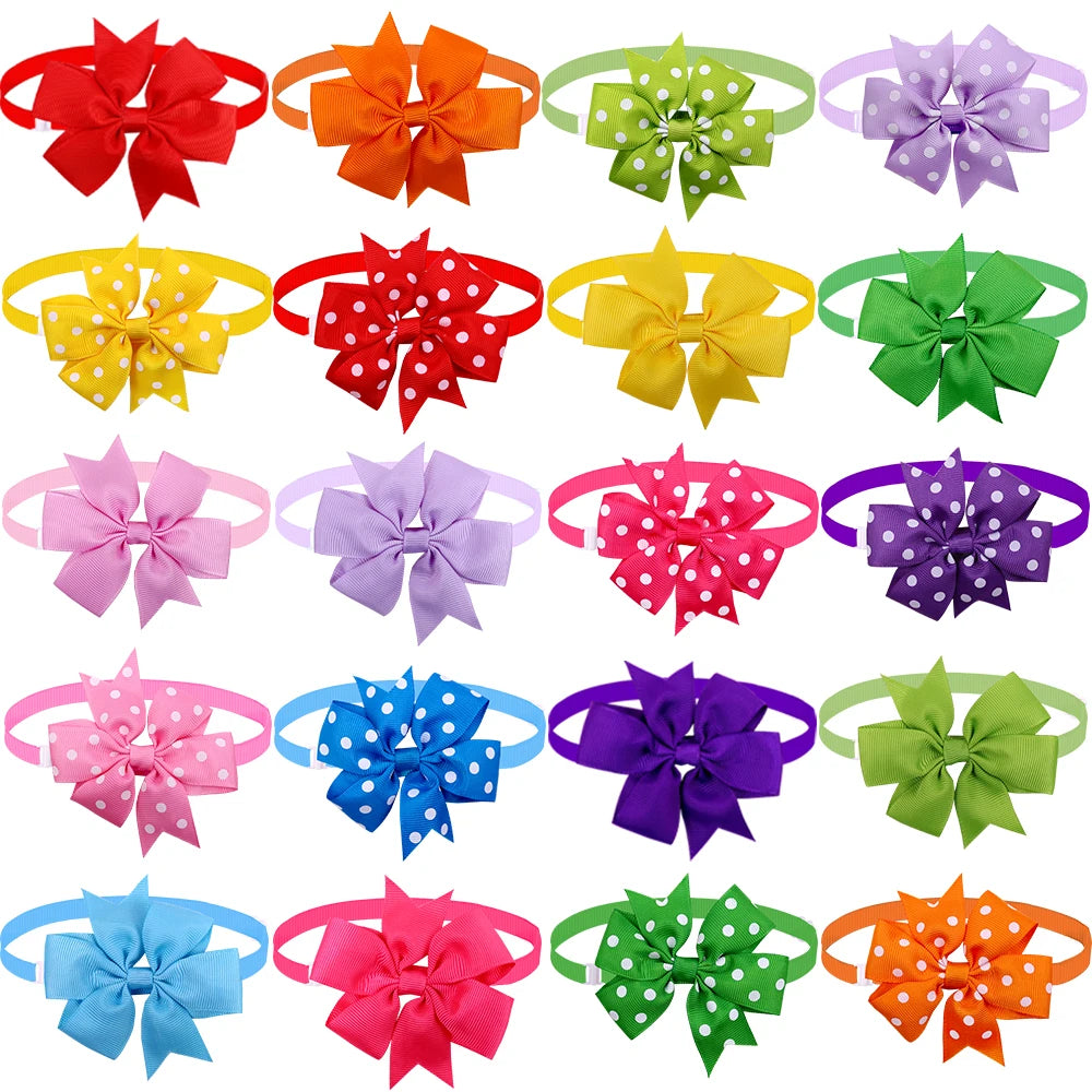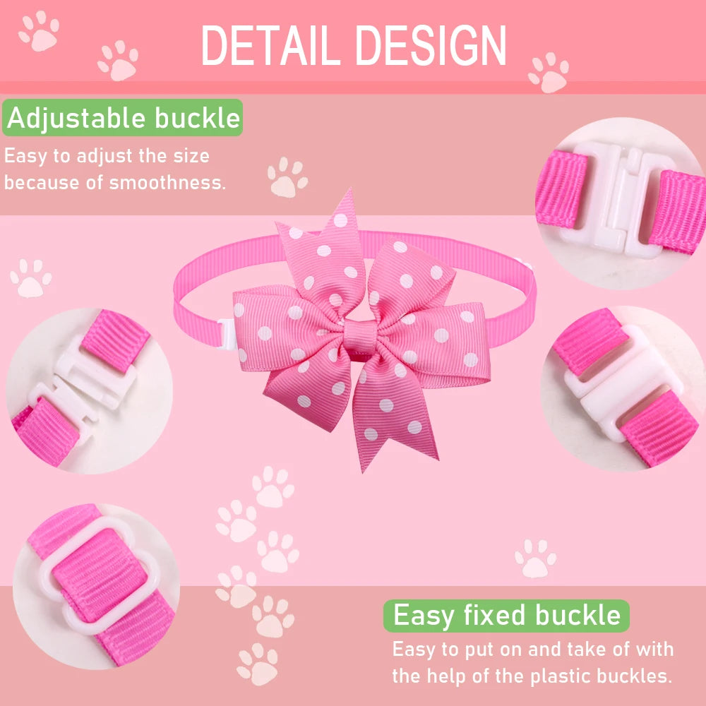 50 Dog Bowtie Collars Pack - Small, Solid & Polka Dot Styles for Pets
