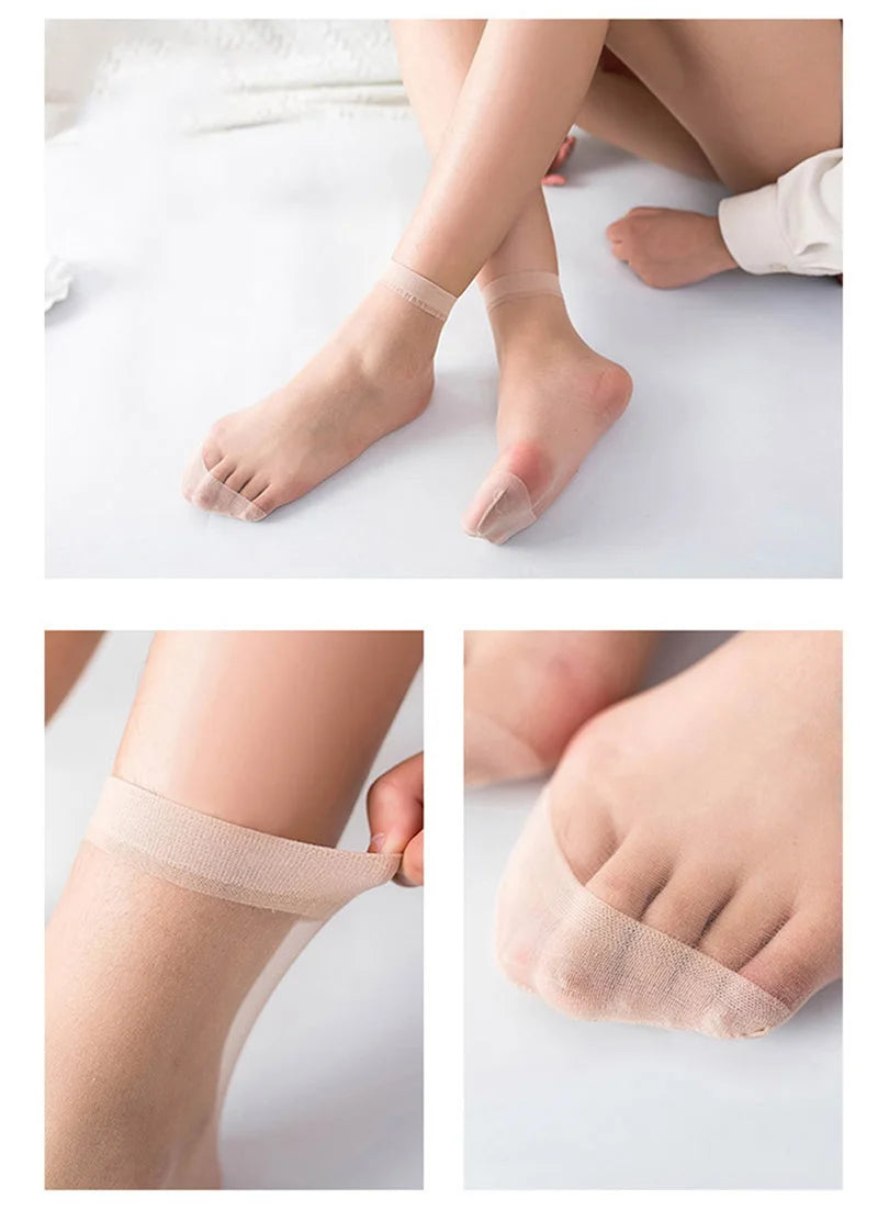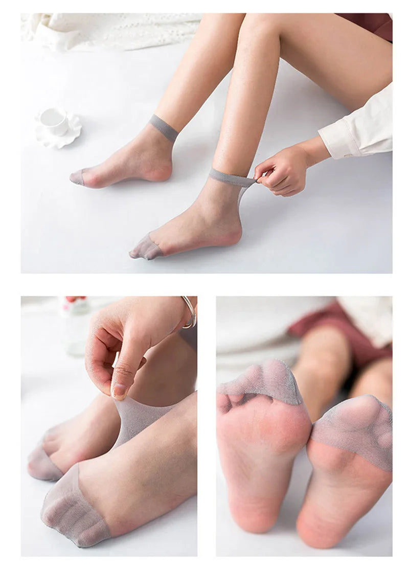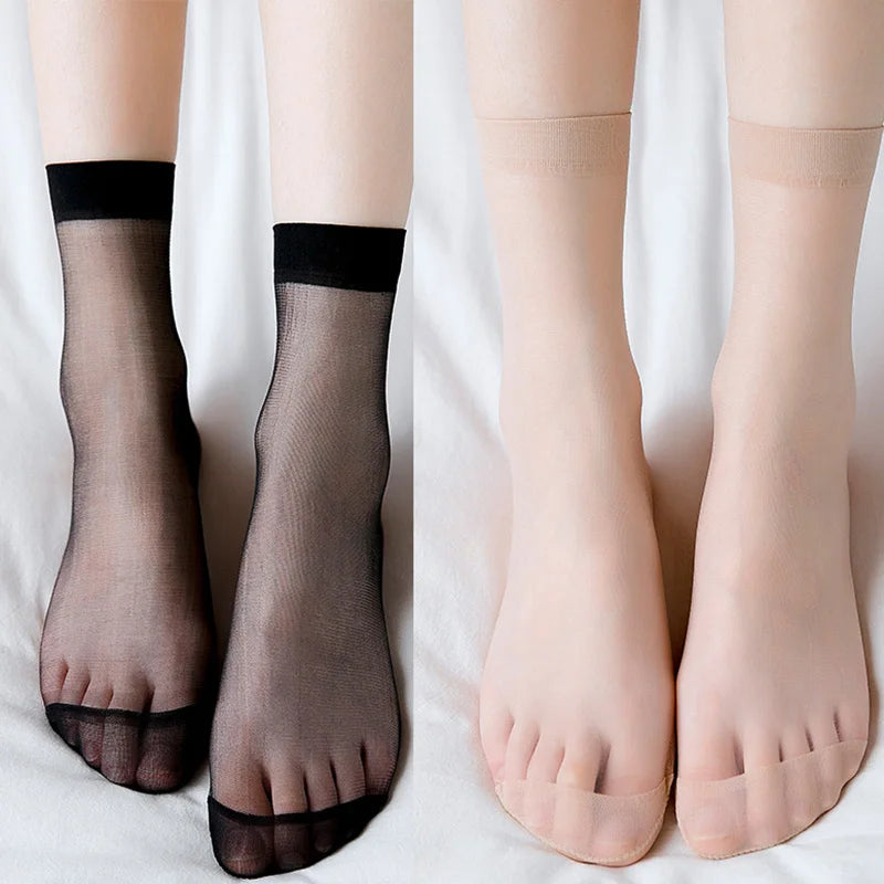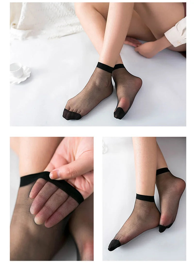 5 Pairs Women's Transparent Summer Ankle Socks Ultrathin Nylon Crystal Silk Elastic Meias