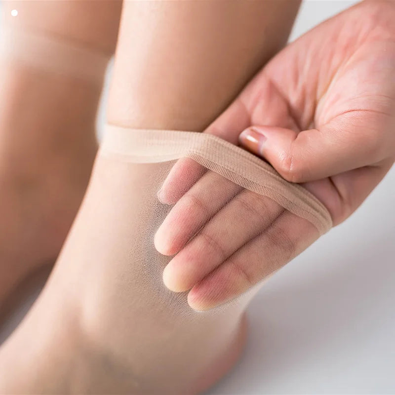 Experience the elegance and comfort of our ultra-thin transparent socks, crafted for modern women seeking style and versatility. Perfect for summer and autumn, these socks blend nylon and spandex for ultimate elasticity and a barely-there feel. Each pack includes five pairs of beautifully designed ankle socks available in sophisticated shades of black, grey, coffee, and skin color.