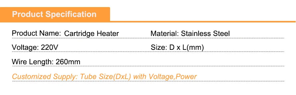 5pcs Electric Cartridge Heater 220V 6mm Stainless Steel Heating Element 80W/100W/120W