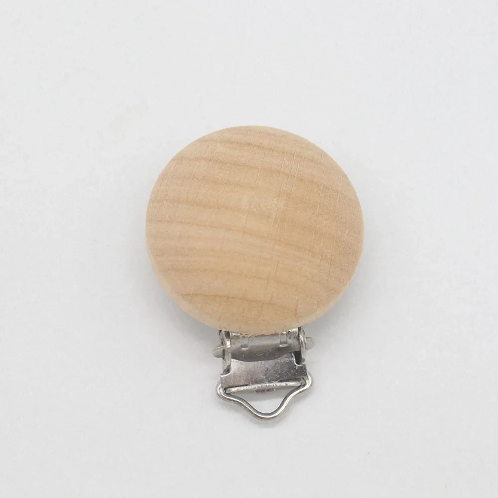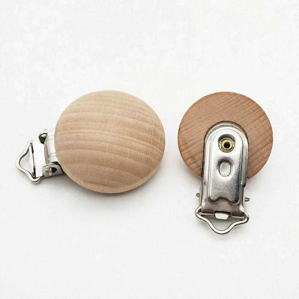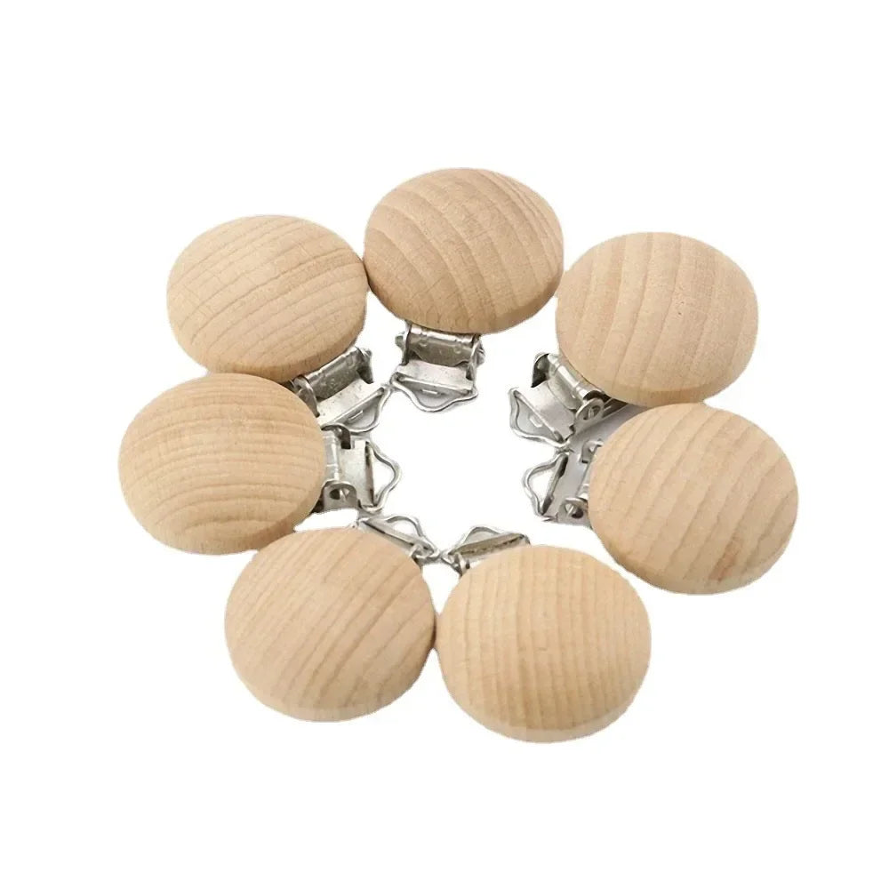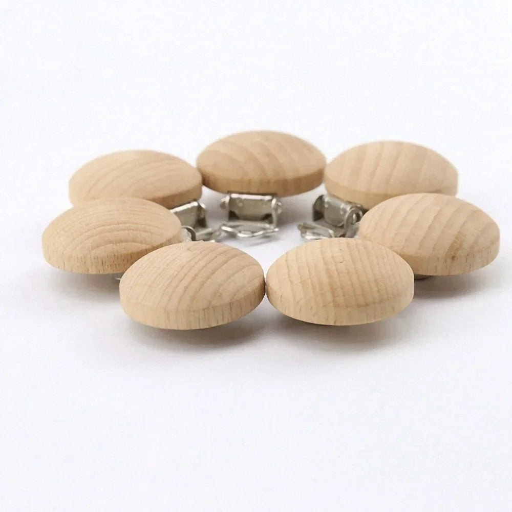 5-Pack Natural Beech Wood Pacifier Clips 30mm, Baby Teether Chew, Round Dummy Holder, Food Grade