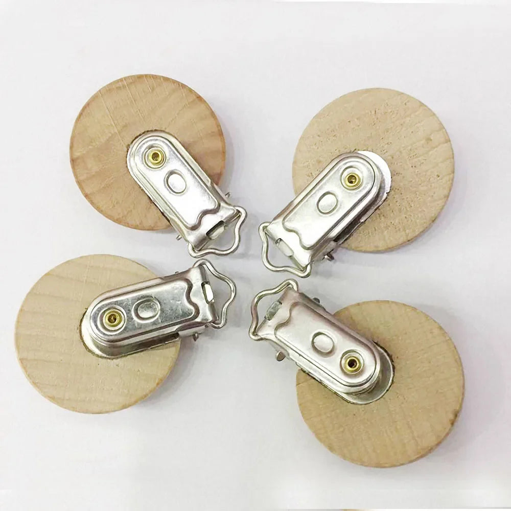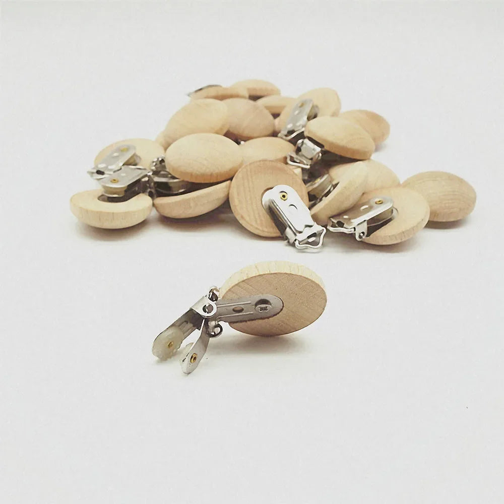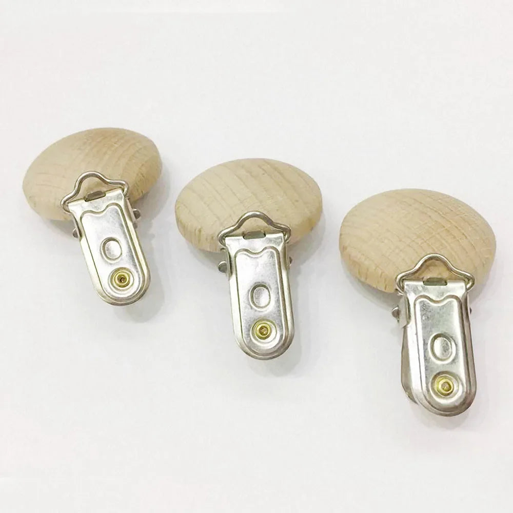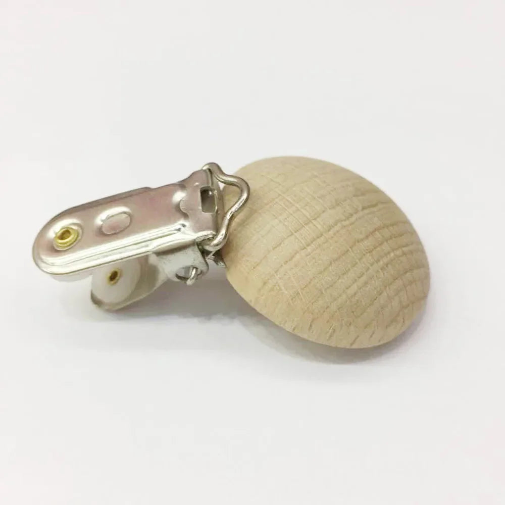 5-Pack Natural Beech Wood Pacifier Clips 30mm, Baby Teether Chew, Round Dummy Holder, Food Grade