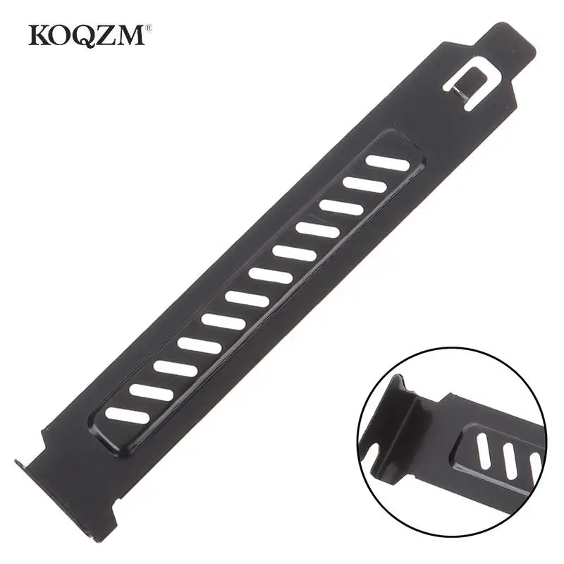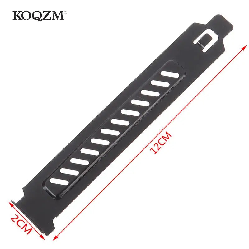 Enhance your computer case's cooling efficiency with these vented PCI slot covers. Designed to fit most ATX cases, these covers help dissipate heat by allowing hot air near the graphics card to escape more effectively. Crafted from durable stainless steel, they come in a sleek black finish that complements any setup.