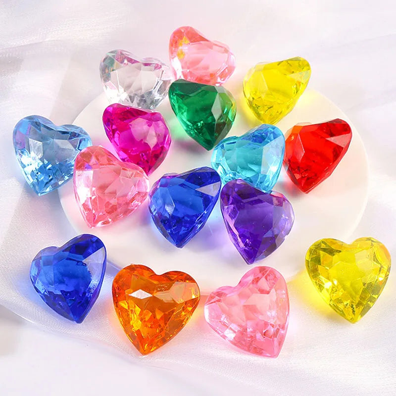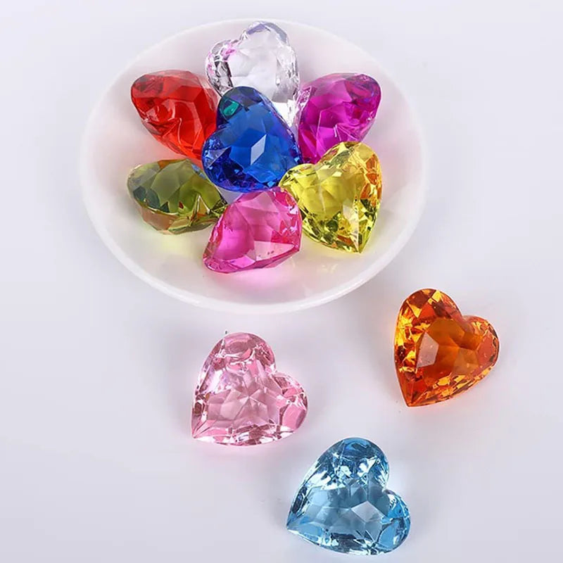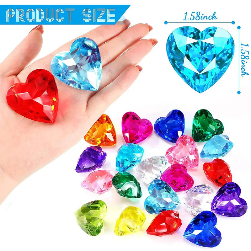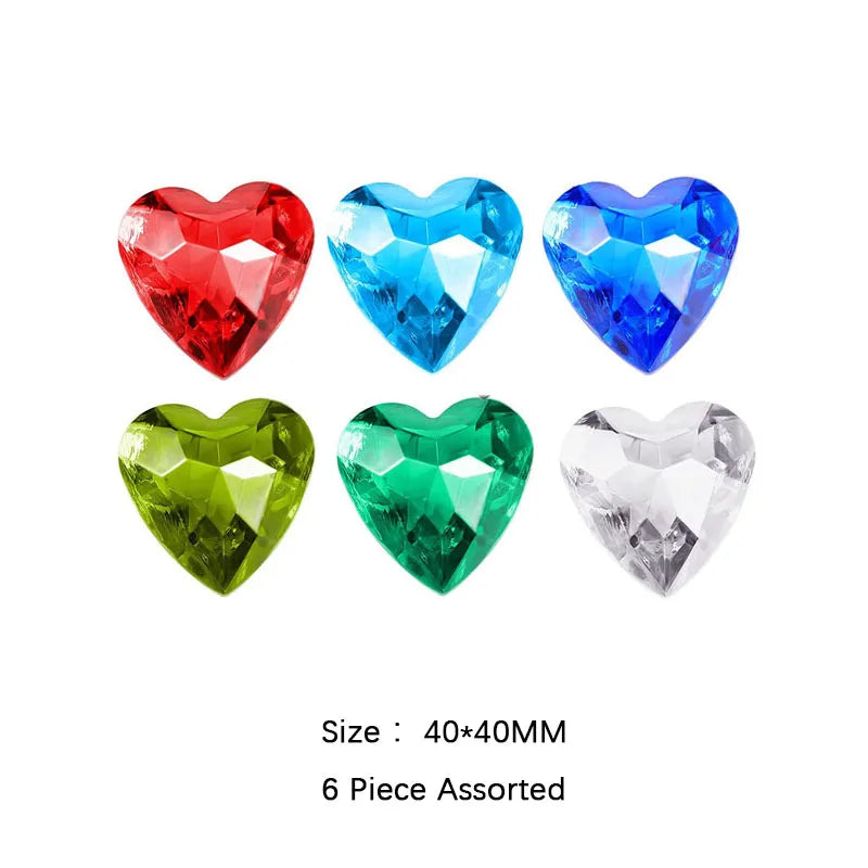 40mm Heart Shaped Acrylic Gems 6-Pack for Crafts & Party Favors