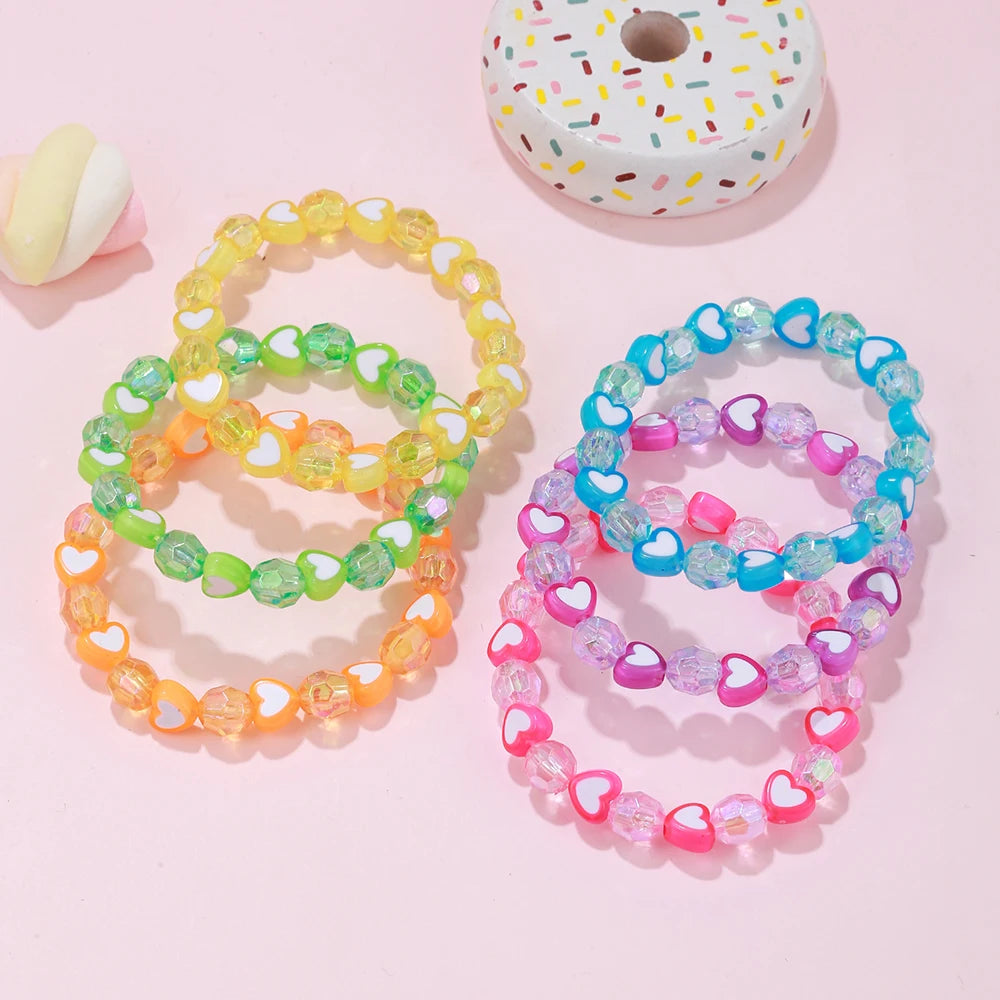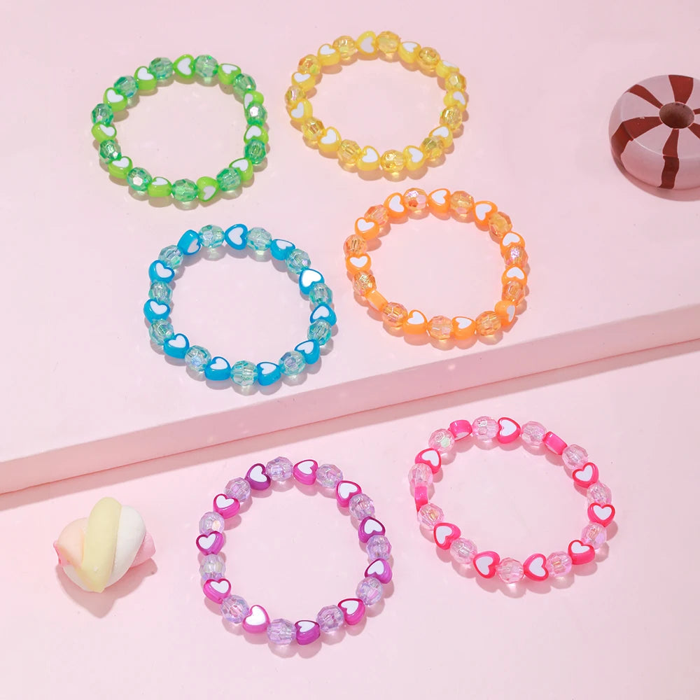 Colorful Heart Beads Elastic Bracelets Set (6pcs) for Daughter Friendship Party Jewelry Gifts