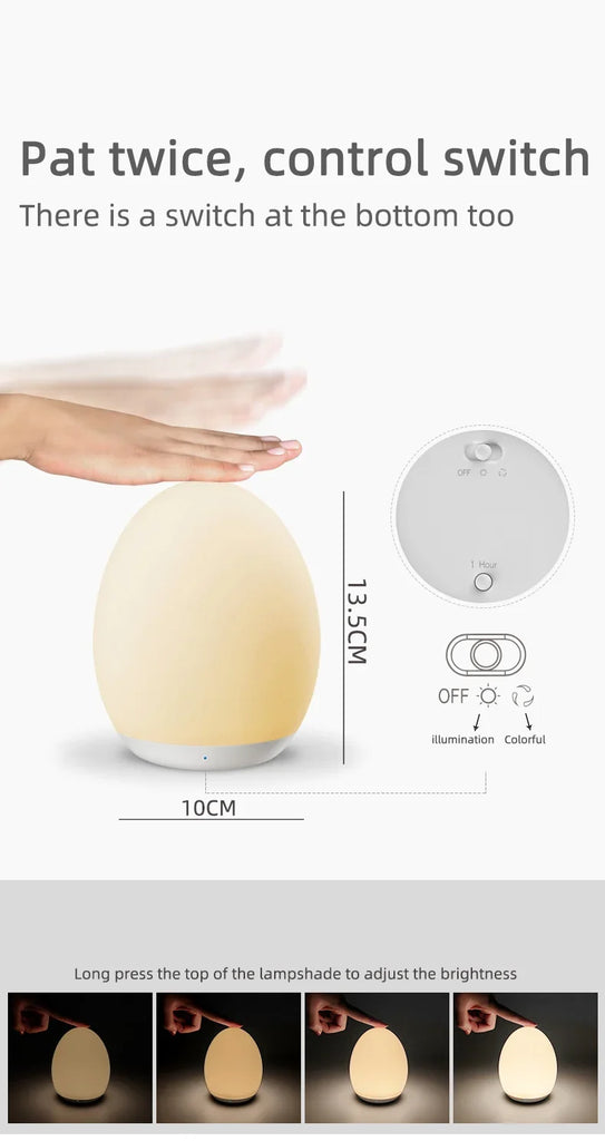 Crafted from safe, food- and toy-grade materials, this adorable nursery light guarantees safety for your little one. The smooth touch control in ☼ mode allows you to adjust the warm light's intensity easily. A simple double tap activates standby mode, providing gentle illumination for nighttime feedings.