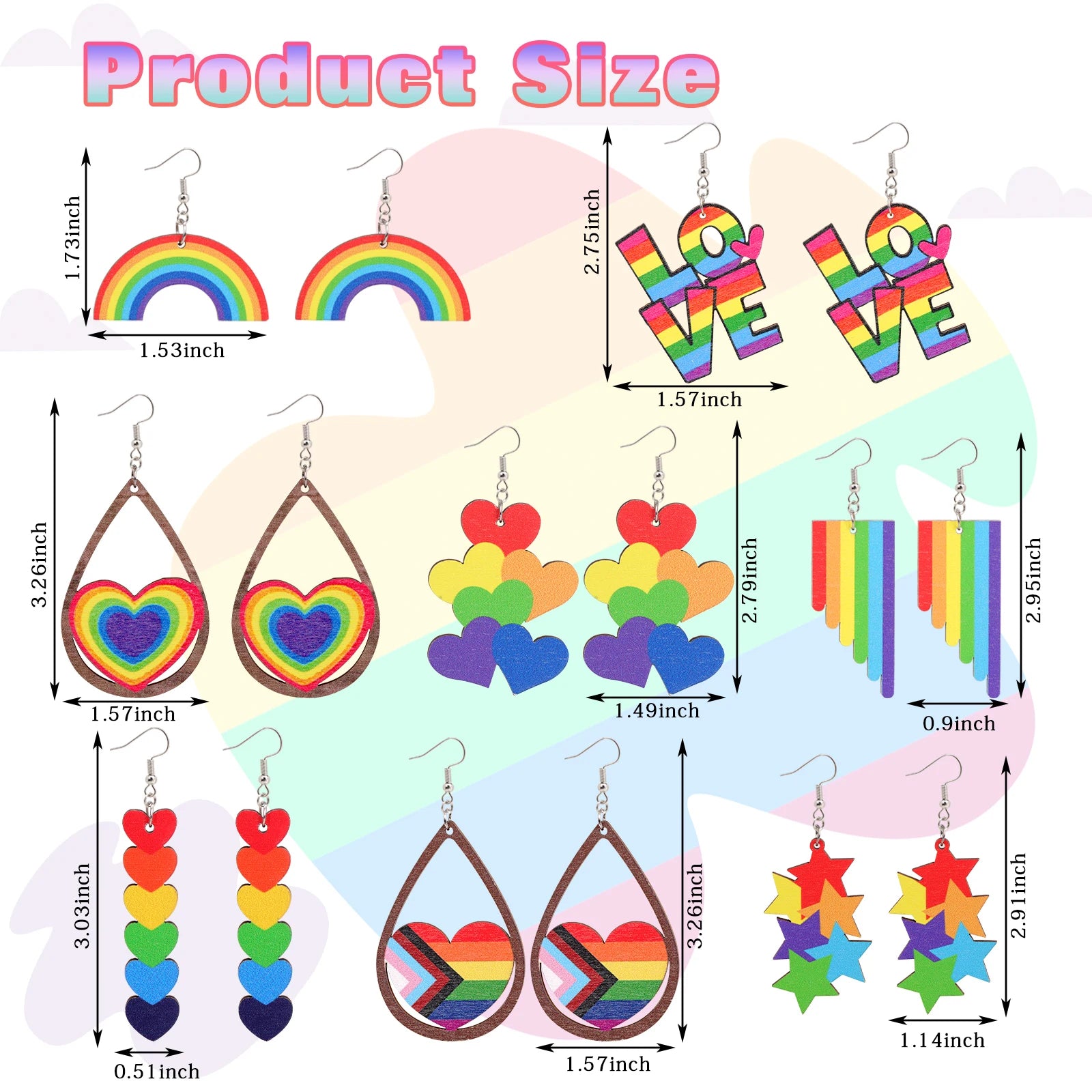 8-Pair Set Rainbow Earrings - Colorful Boho Dangle for LGBTQ+ Pride, Friendship Jewelry for Bisexuals, Lesbians, Gays