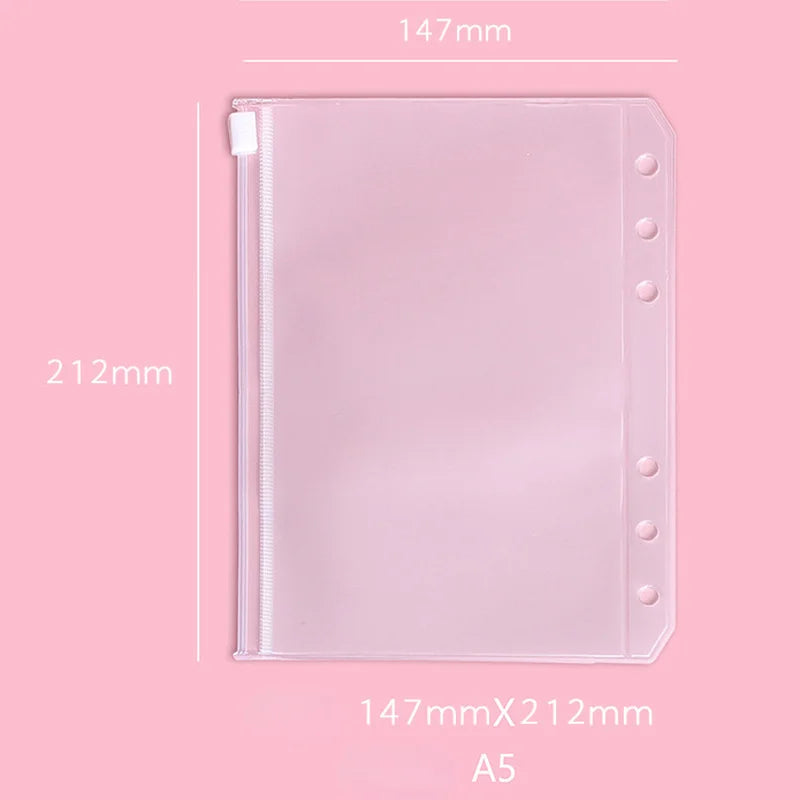 A5 A6 A7 Loose-Leaf Binder Insert: Transparent Notebook Pouch with Rings & Holes File Holder Organizer