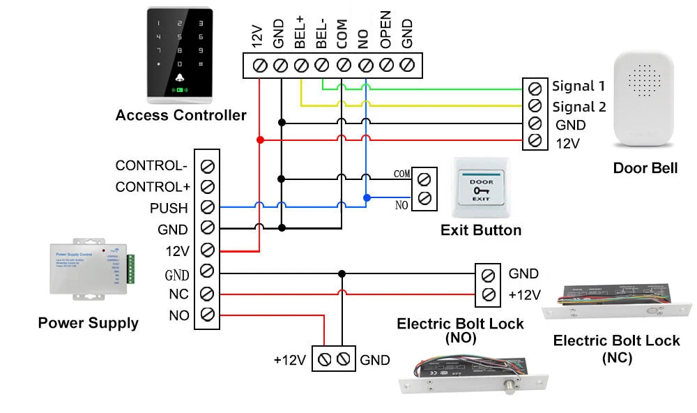 - Compatible Devices: Electric locks, access controllers, exit push buttons