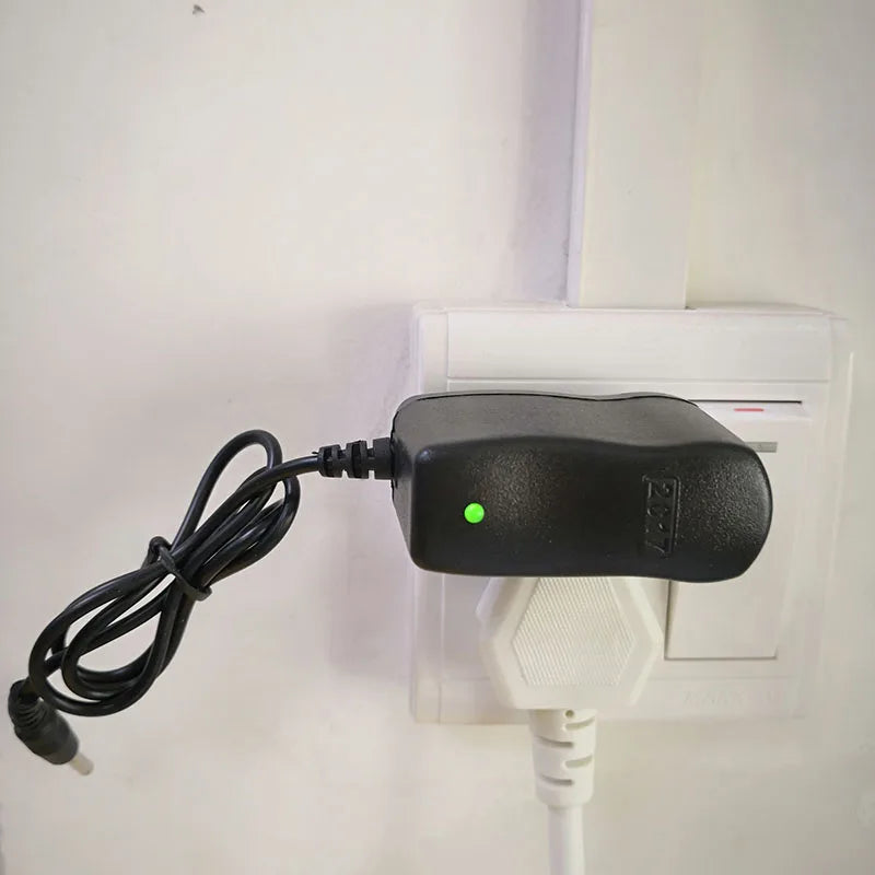 This power adapter features a compact 3.5mm x 1.35mm DC plug and provides an output of 500mA. Safety is a priority with built-in protection against overcharging and short circuits. The smart indicator system includes a green light for standby and a red light for active charging, switching back to green once the battery is fully charged.