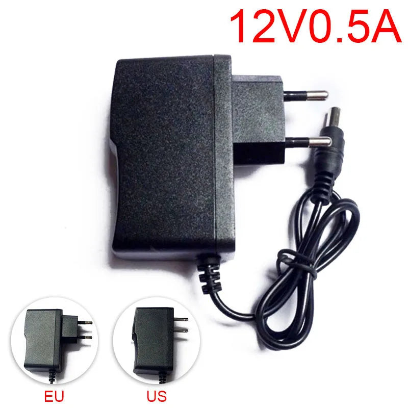 12V 0.5A Power Adapter Charger for Camera, LED Strip Light 5.5x2.1mm, AC 100-240V Input