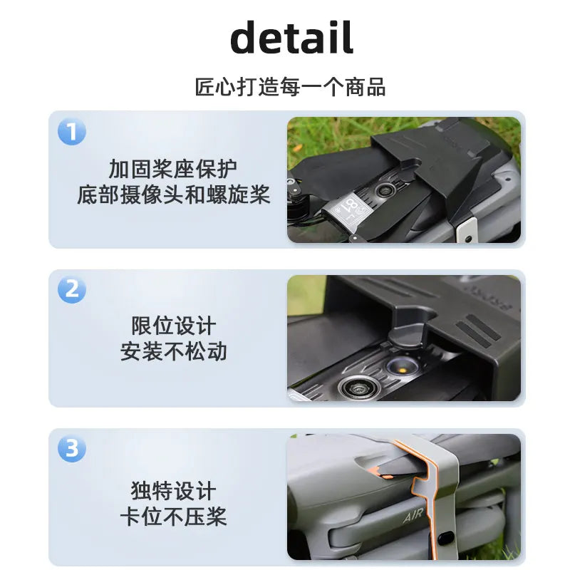 - Protective Design: Avoids squeezing propellers and fits closely to the drone body without obstructing the installation of the lens cap.