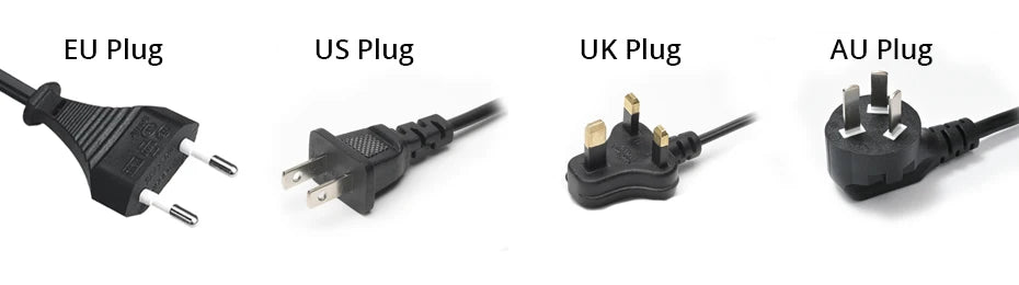Note: Choose the appropriate plug type for your country. Actual product colors may vary slightly due to screen settings and lighting conditions.