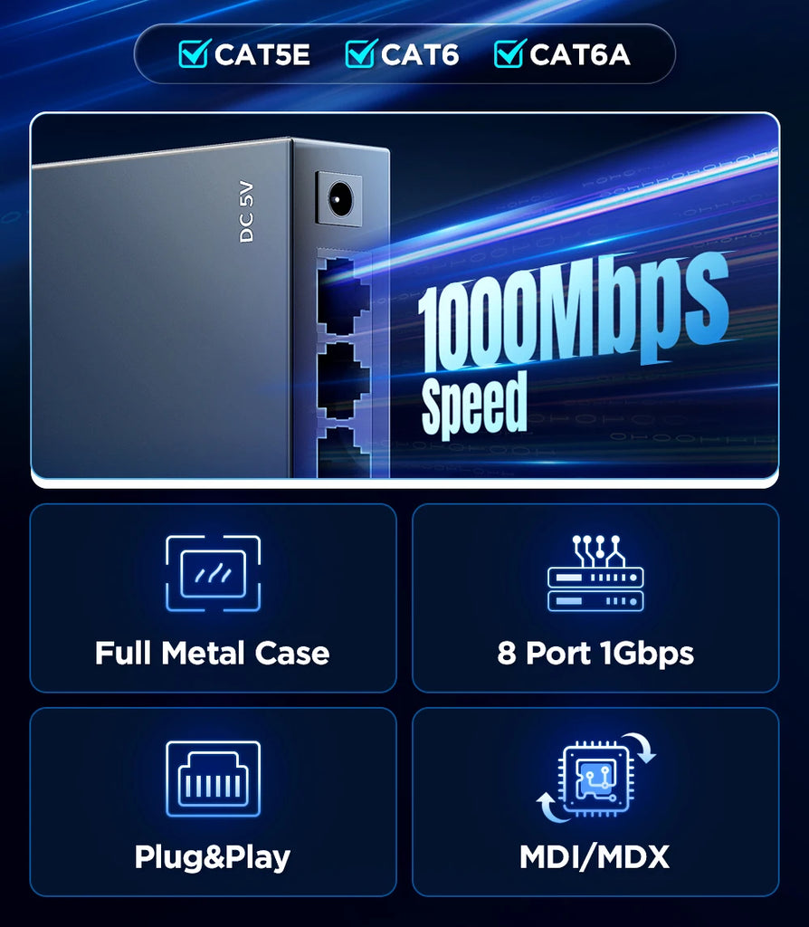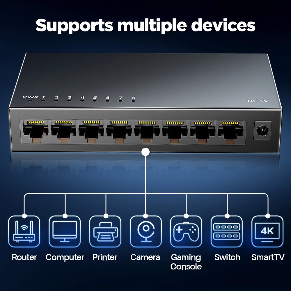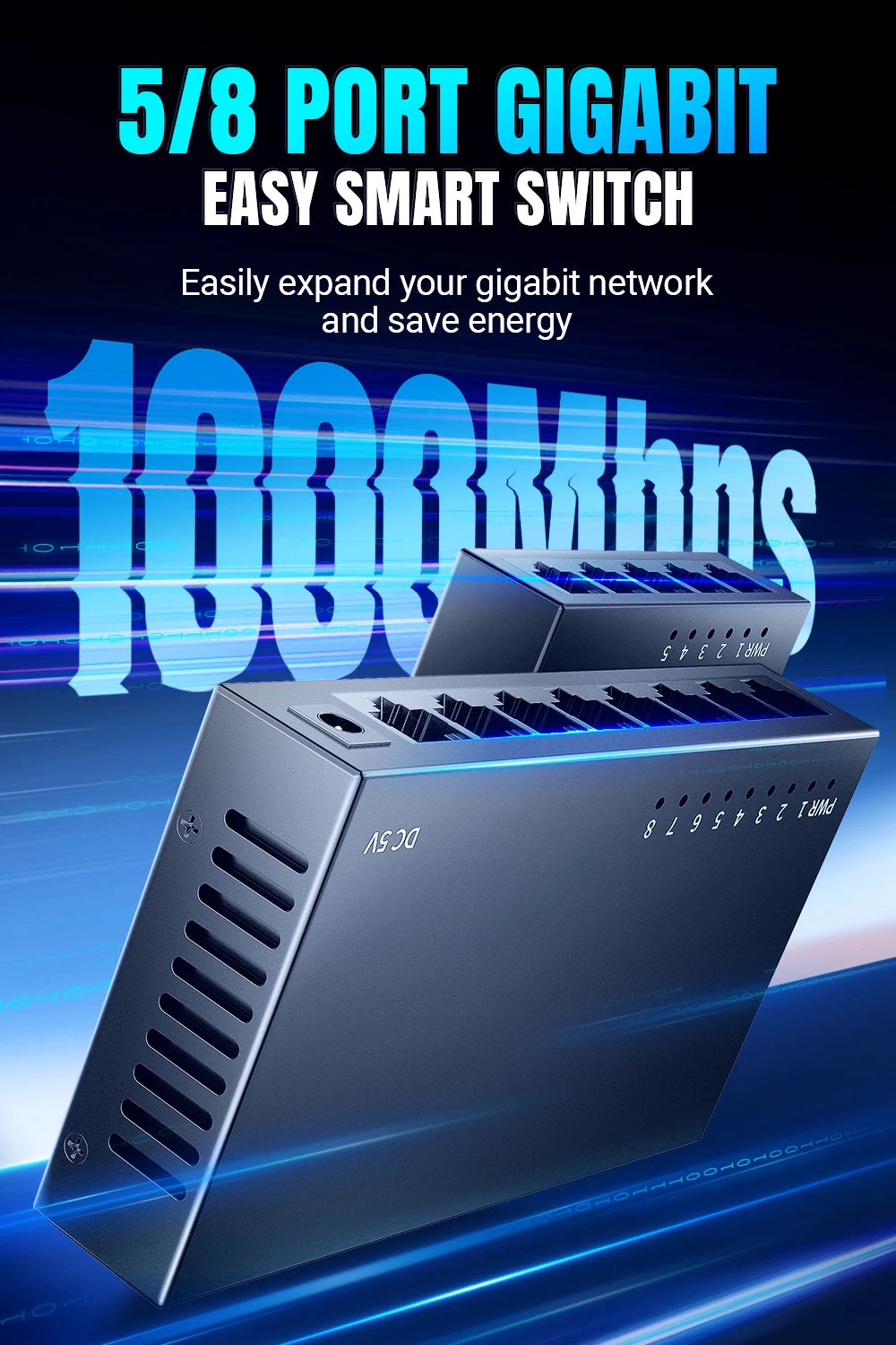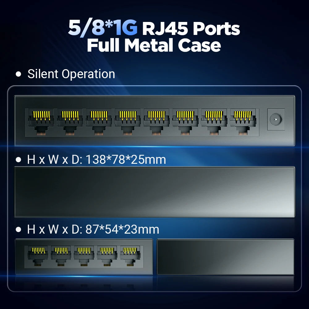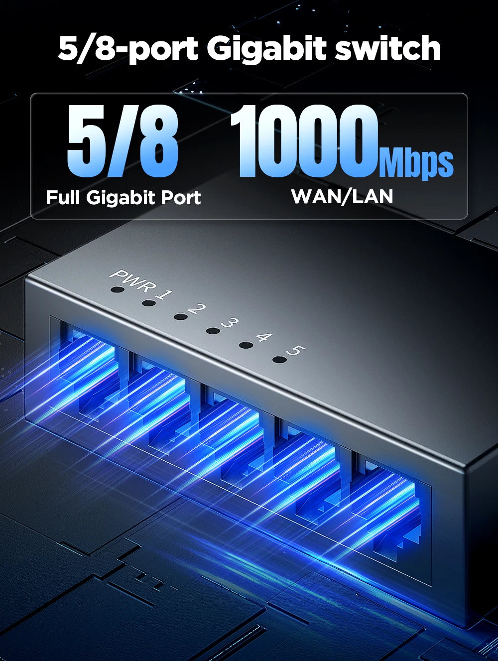 - 5/8 Gigabit RJ45 Ports: Seamless connection with adaptive speeds.