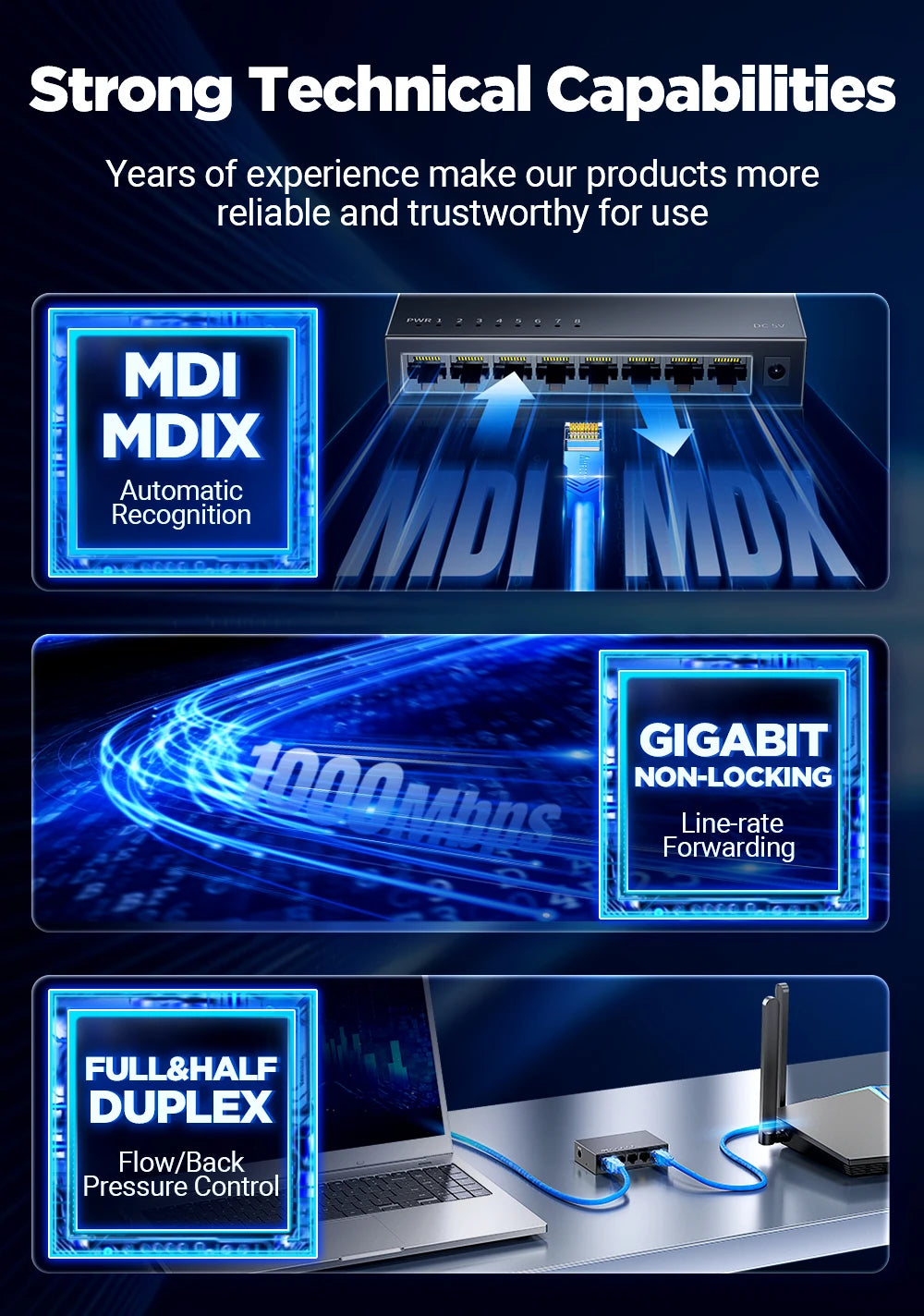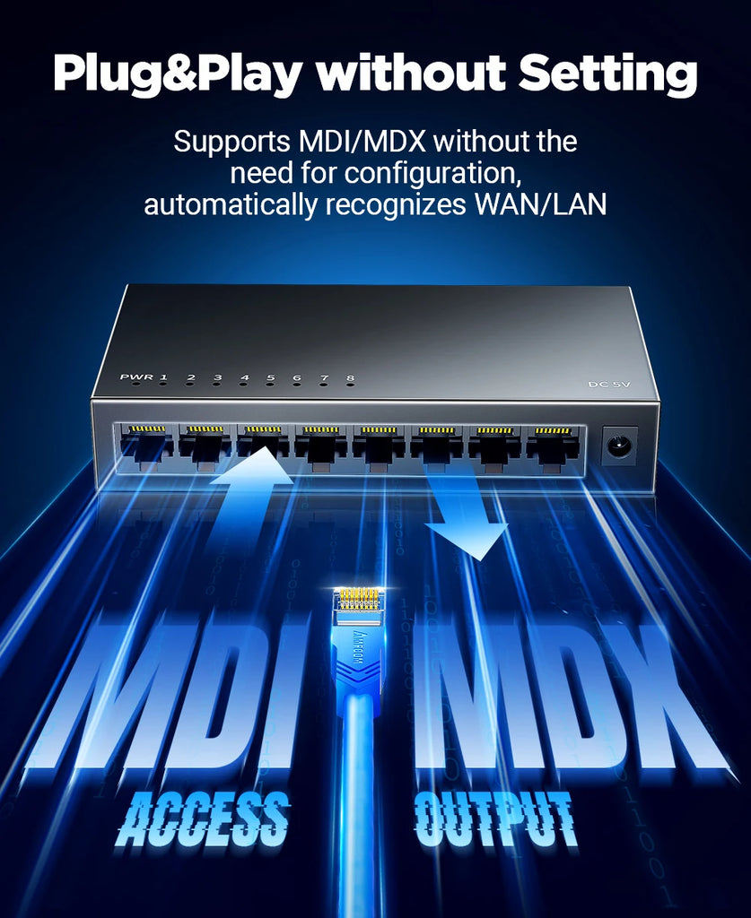 - Auto MDI/MDIX Support: Automatic network configuration.