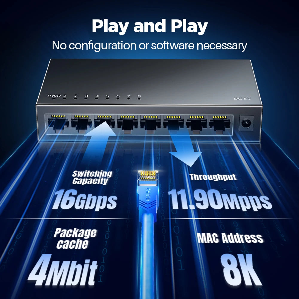 Gigabit 1000Mbps Ethernet Network Switch 5/8 Port RJ45 Hub Internet Splitter