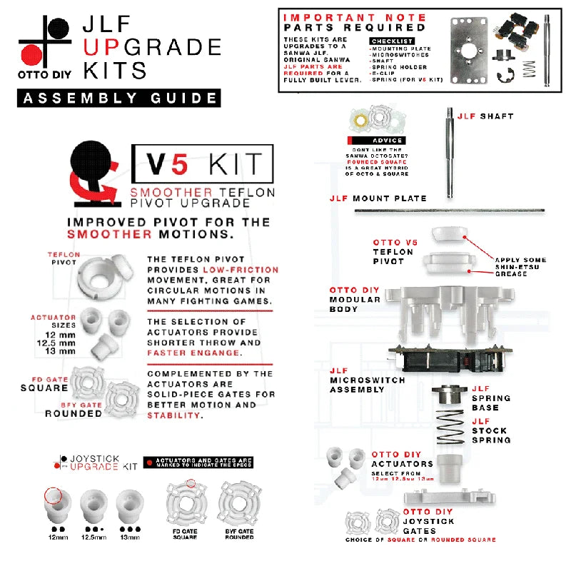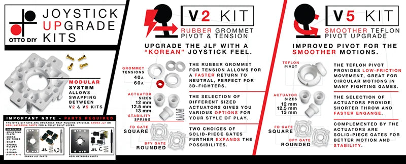 Upgrade your joystick performance with the V5 Kit, specifically designed for Sanwa JLF and Hori Hayabusa models. This kit is engineered to significantly reduce throw distance and enhance joystick fluidity, providing precise 360-degree movement for a competitive edge during intense gaming sessions.