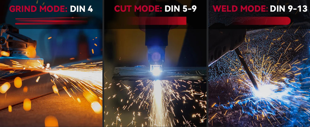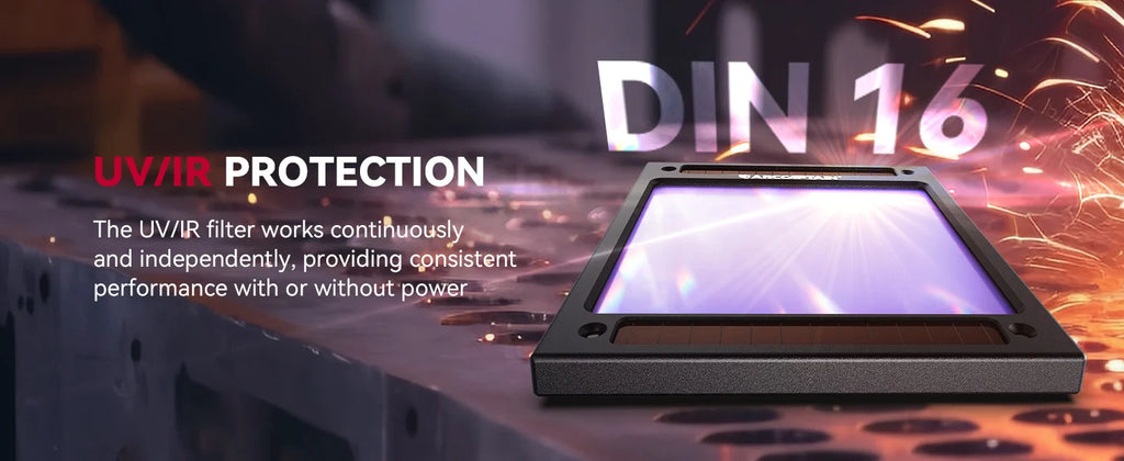 Protect your eyes with the 12-in-1 smart filter, providing automatic DIN 16 UV/IR protection to effectively block harmful rays. This versatile helmet is designed to adapt to a variety of environments and welding needs.