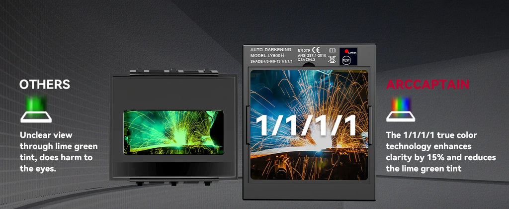 Auto Darkening Welding Helmet 4 Arc Sensor, Large Viewing 3.94" x 3.66", True Color, 1/1/1/1 Rating, Welder Mask