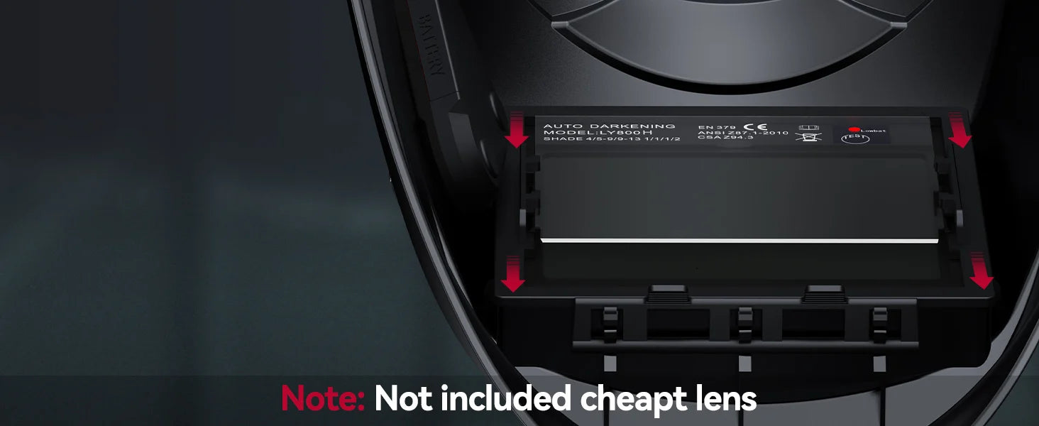 Includes welding helmet, LED light, two replacement lenses, one lithium battery, and a user manual.
