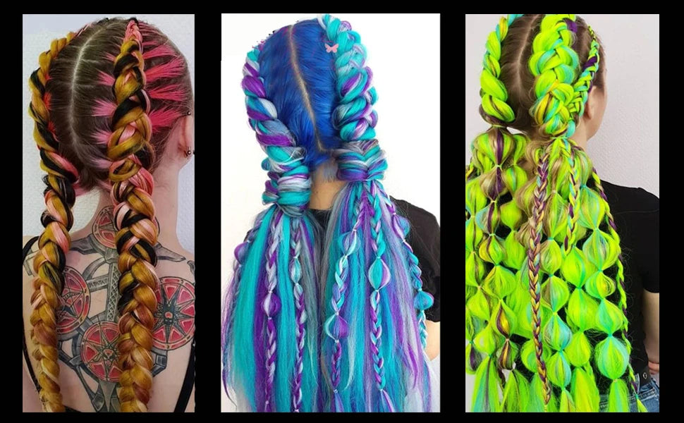 24" Jumbo Box Braids Extensions Synthetic Hair for DIY Braiding - Pink, Purple, Yellow, Gray
