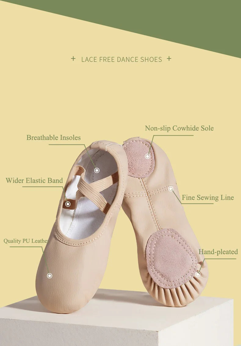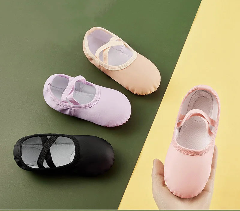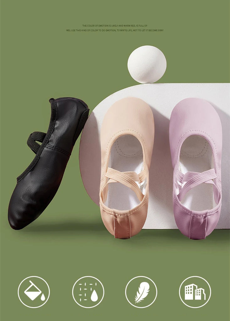 Experience the perfect blend of comfort and style with our soft leather ballet shoes, designed for all age groups from toddlers to adults. These versatile shoes are perfect for ballet practice, modern dance, yoga, and stage performances. Crafted from breathable PU leather, they are lightweight, no-slip, and wear-resistant, ensuring a comfortable fit.