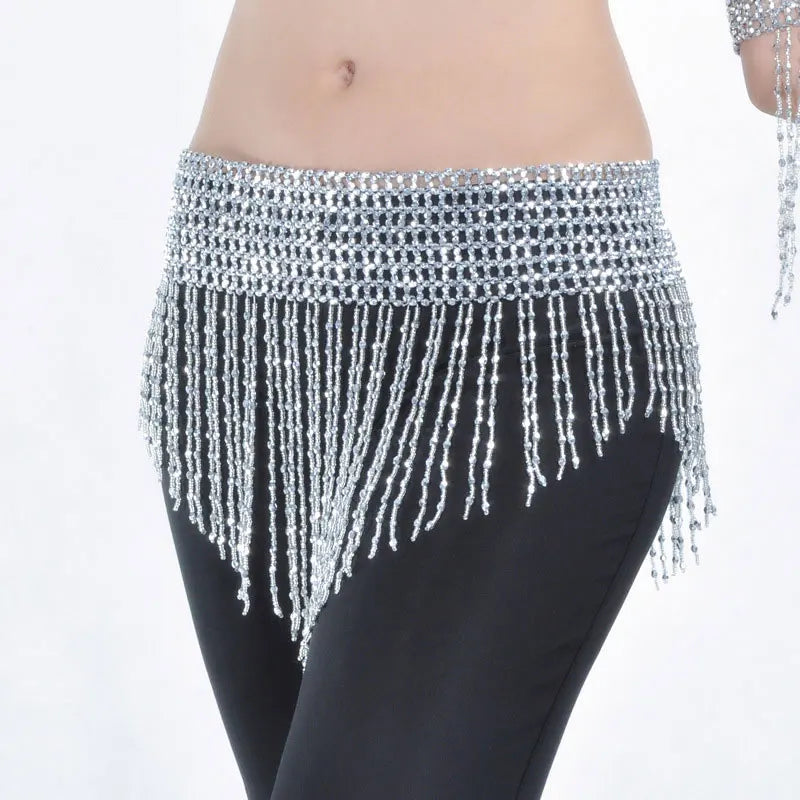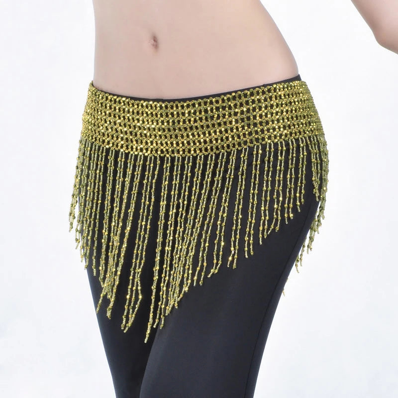 Belly Dance Hip Scarf Belt | Elastic, Hand-Beaded | 3 Colors | Bling Dress Accessory
