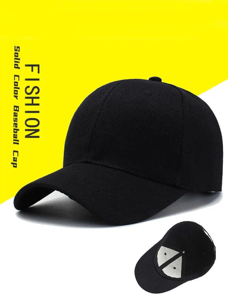 Black Solid Baseball Cap Snapback Fitted Casual Hat Unisex Hip Hop Dad Cap Men Women