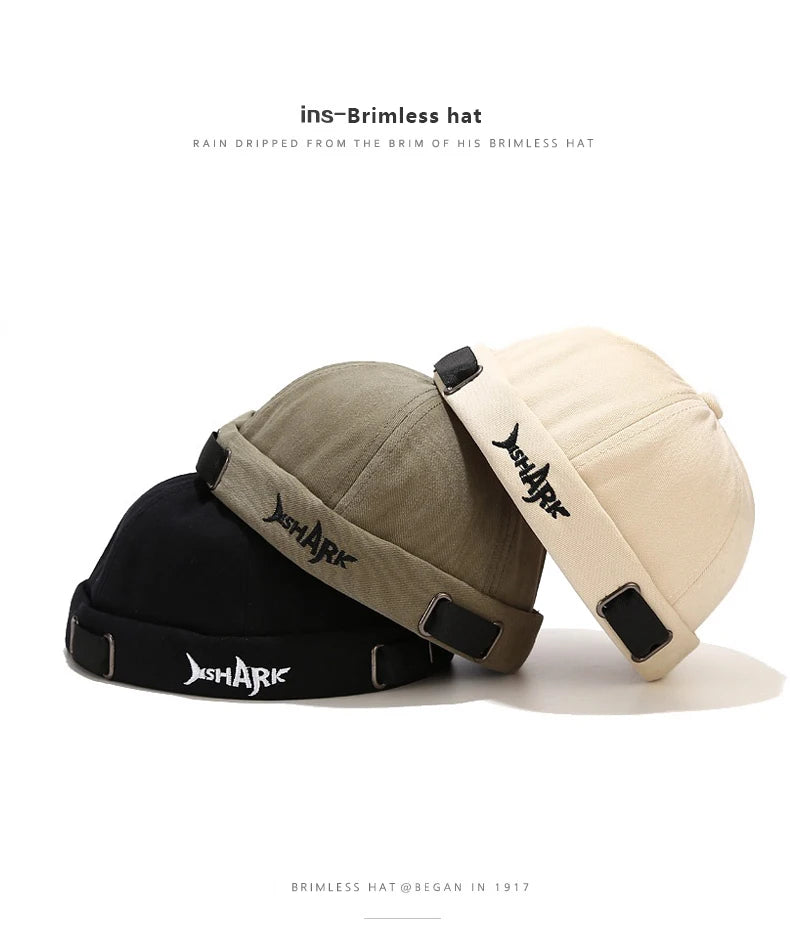 Adjustable Embroidered Docker Beanie Cap Shark Letter Brimless Skullcap Solid Color Fashion Hat