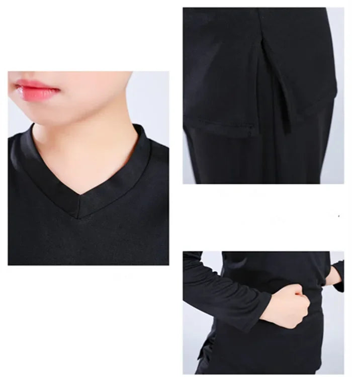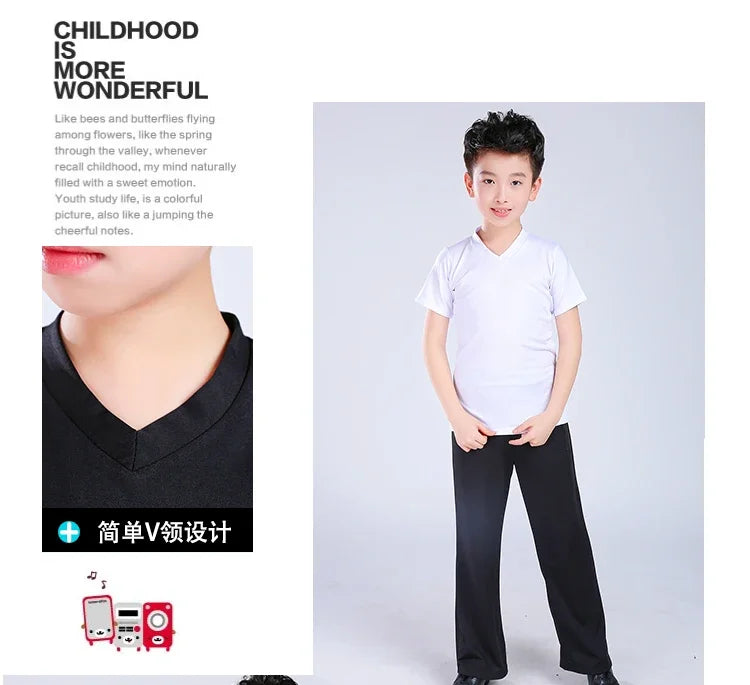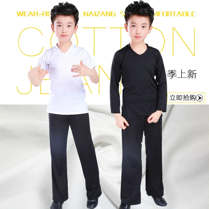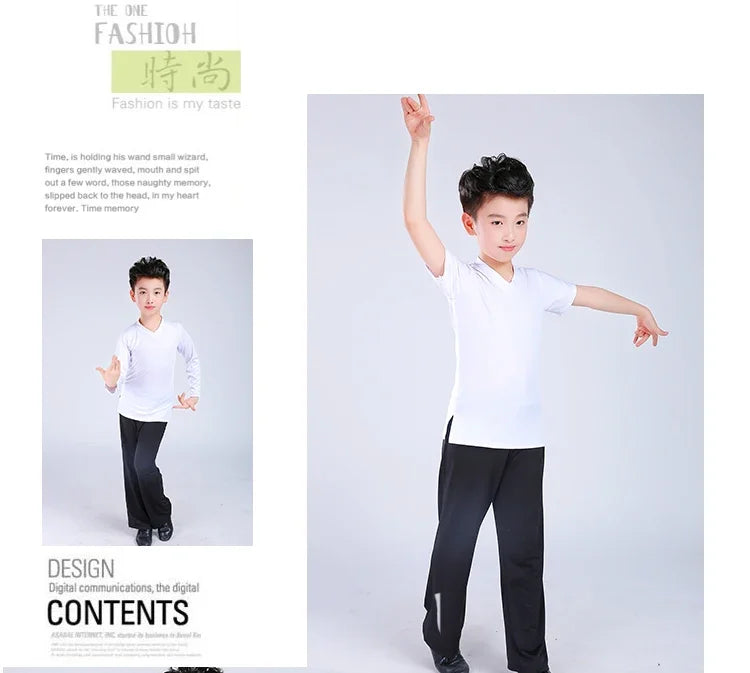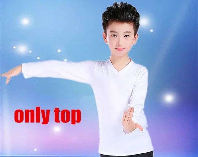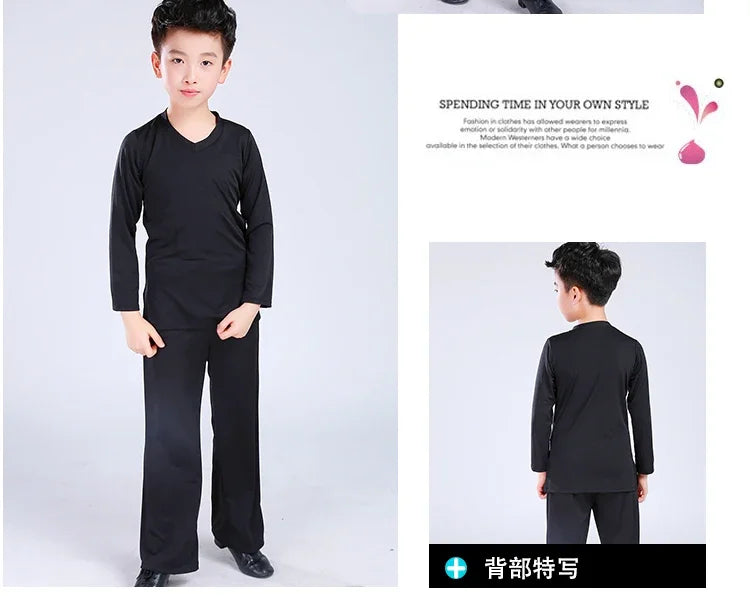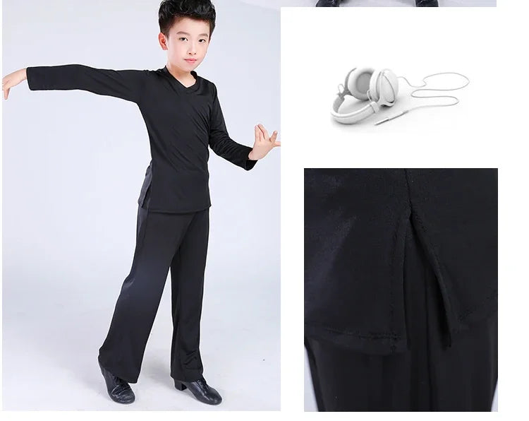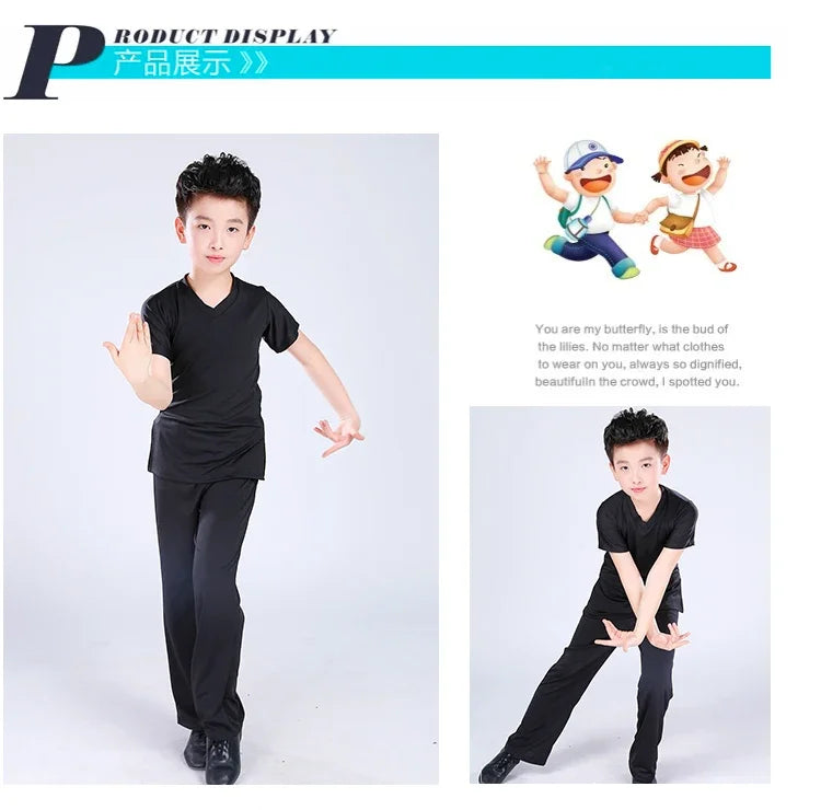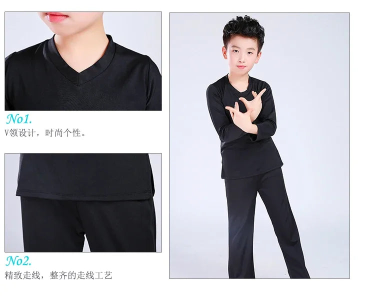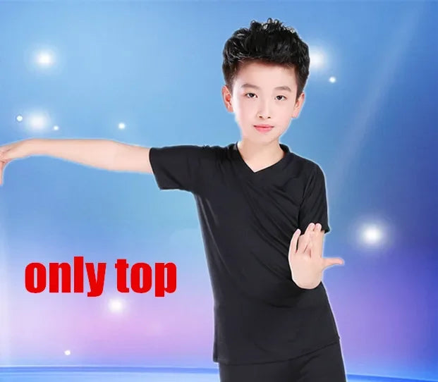 Elevate your child's performance with this stylish Latin dance set. Designed for boys, this outfit combines comfort and flexibility, crafted from high-quality polyester and spandex materials. The set includes a sleek top and matching pants, ensuring a polished look for any dance occasion. Available in various sizes to accommodate heights from 110cm to 170cm, this ensemble is ideal for young dancers aiming to shine.