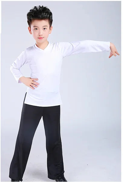 Boys' Latin Dancewear Set - Ruffle Ballroom & Modern Dance Shirt + Pants for Exercise & Performance