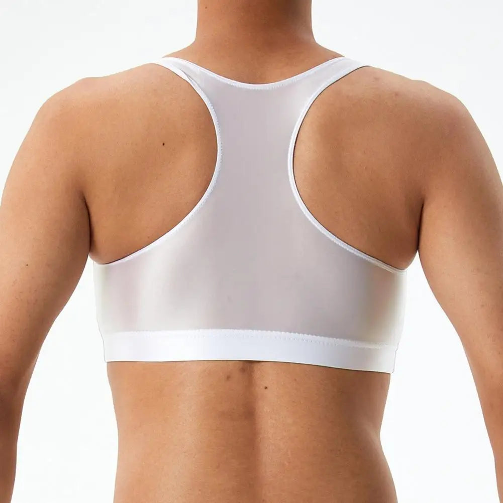 Elevate your casual wardrobe with this sleek men's racerback tank top, designed for both style and comfort. Featuring an O-neck and sleeveless construction, this vest is crafted from soft and breathable nylon fabric, ensuring a smooth and form-fitting silhouette. Ideal for a variety of occasions, whether you're lounging at home, heading out for a casual day, or attending a summer gathering, this versatile piece offers high elasticity for unrestricted movement. Its glossy, solid color and smooth surface add a touch of elegance to a simple, everyday style.