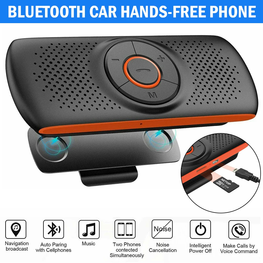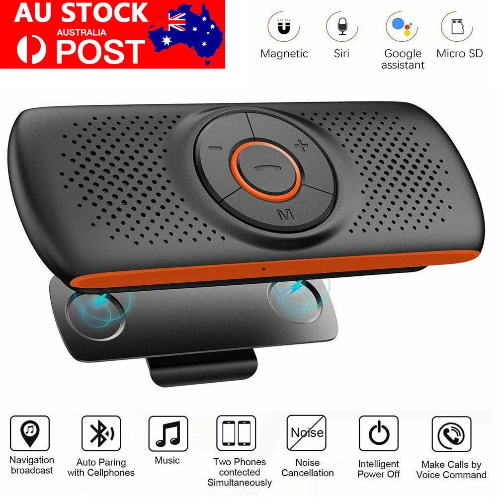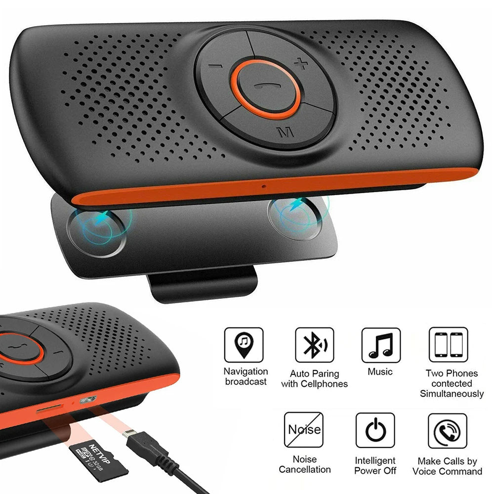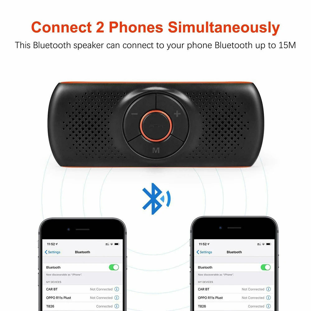 Bluetooth Car Kit Handsfree Speakerphone Multipoint Sun Visor Speaker & Charger for Smartphones