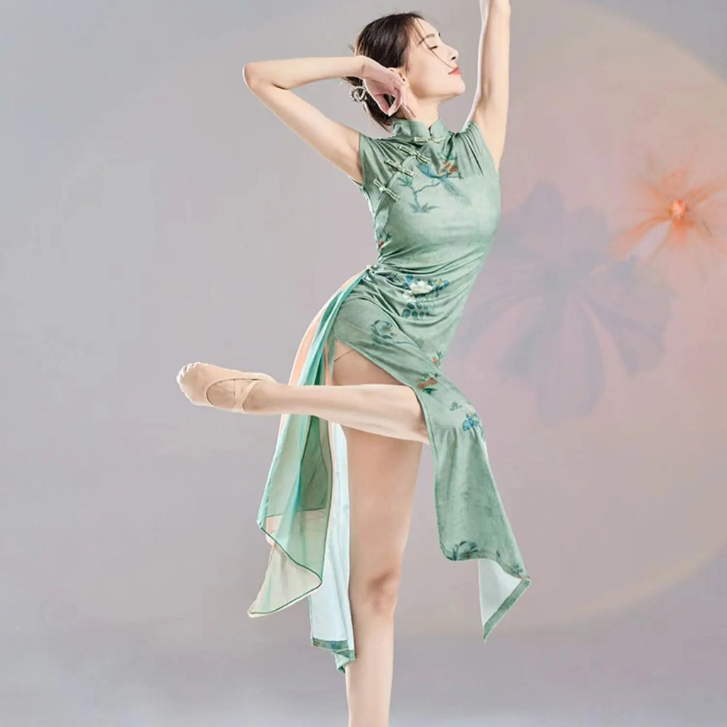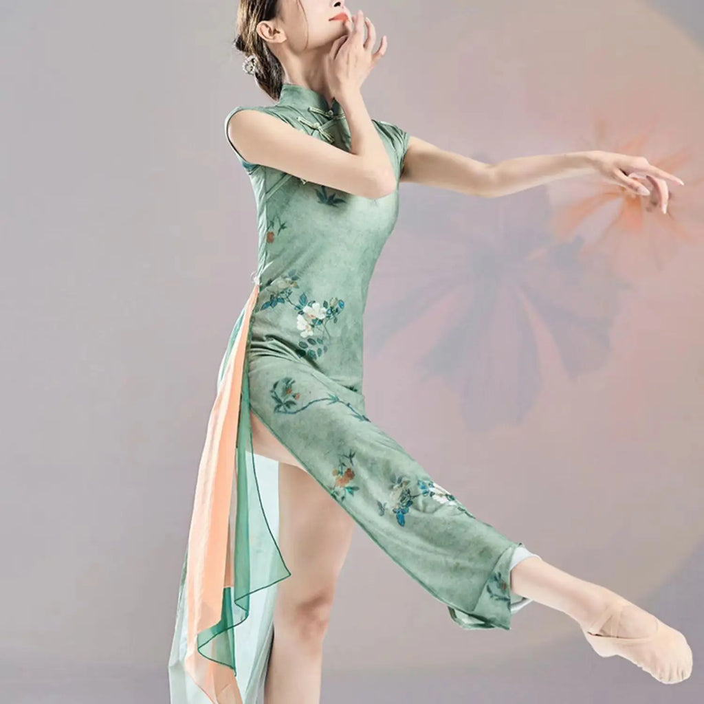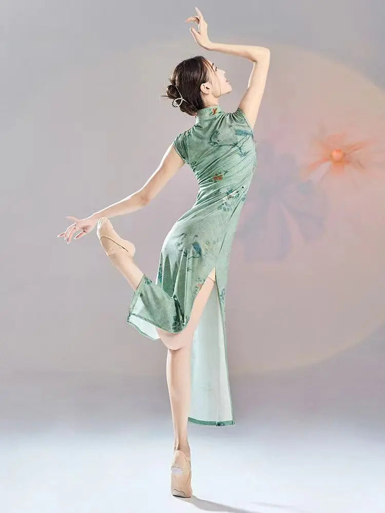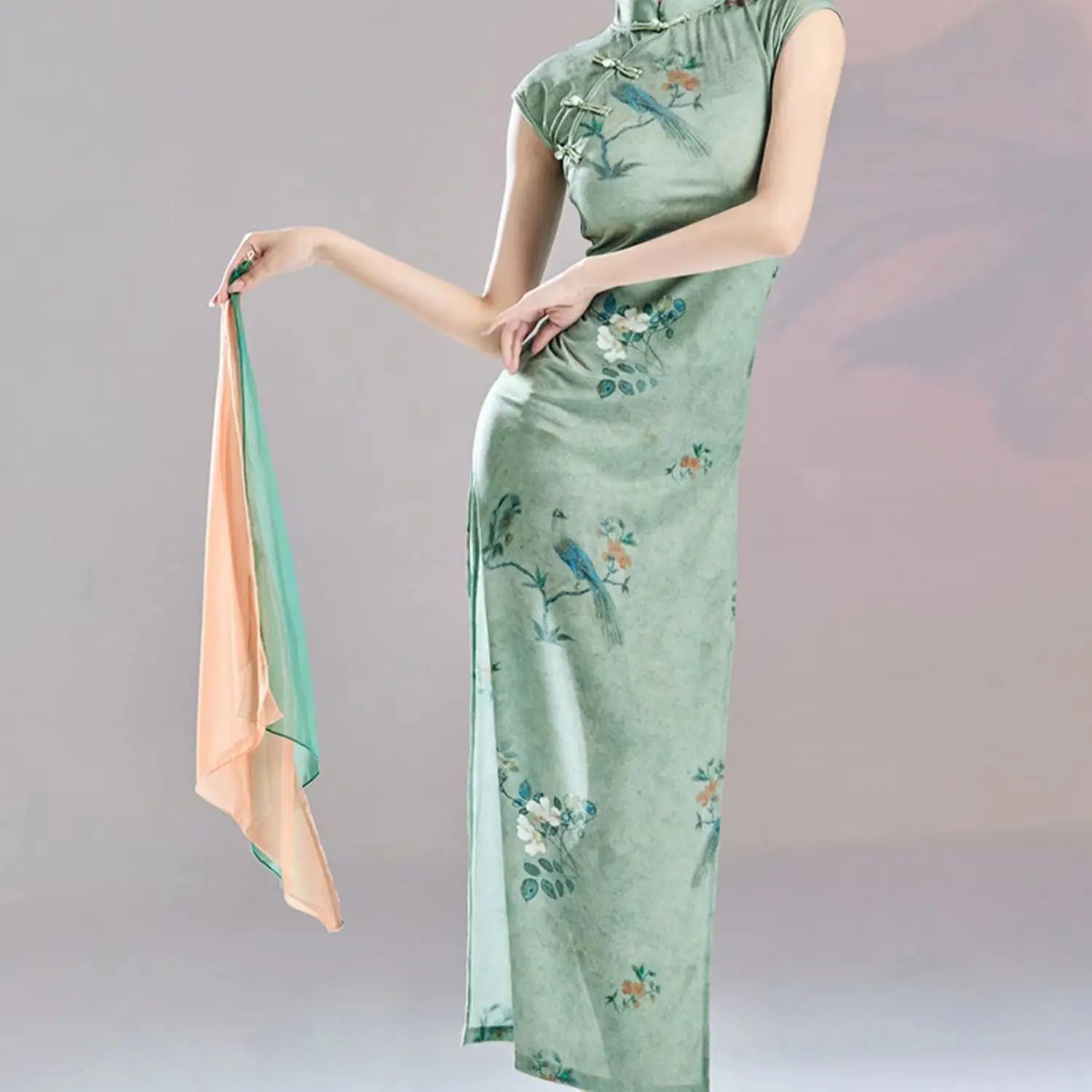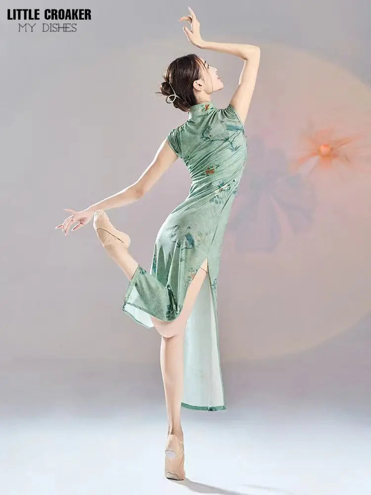 Green Chinese Cheongsam Dance Dress 2024 Modern Qipao Costume