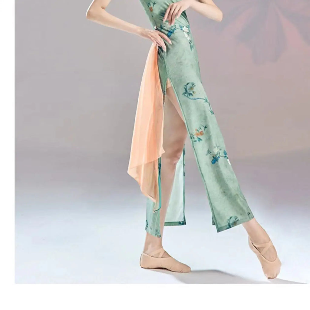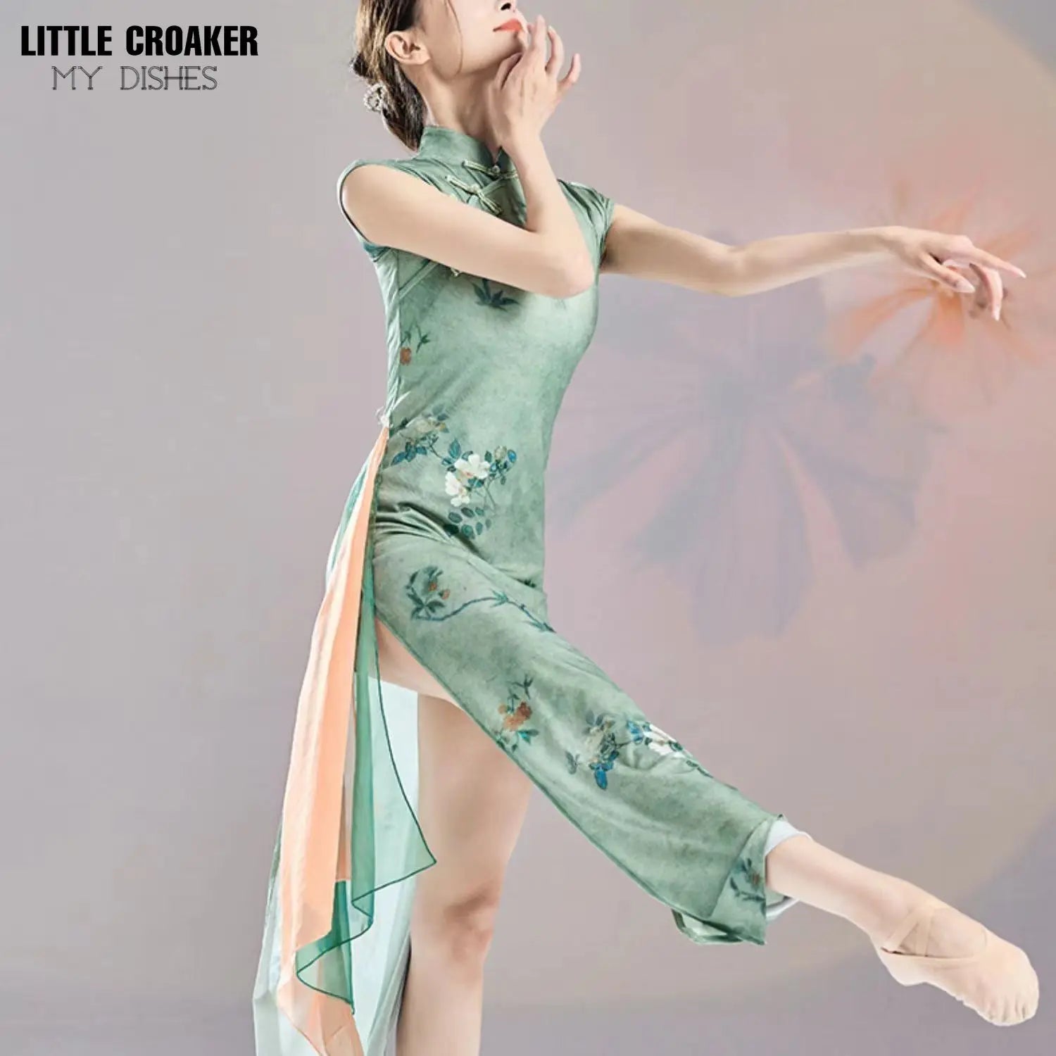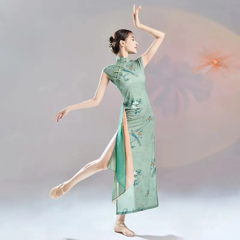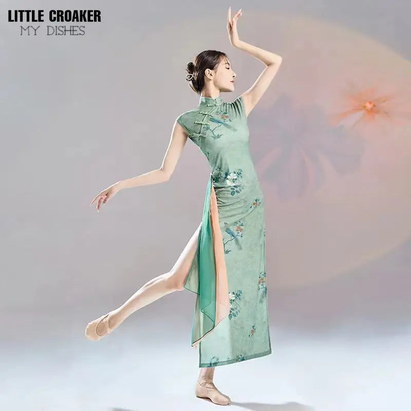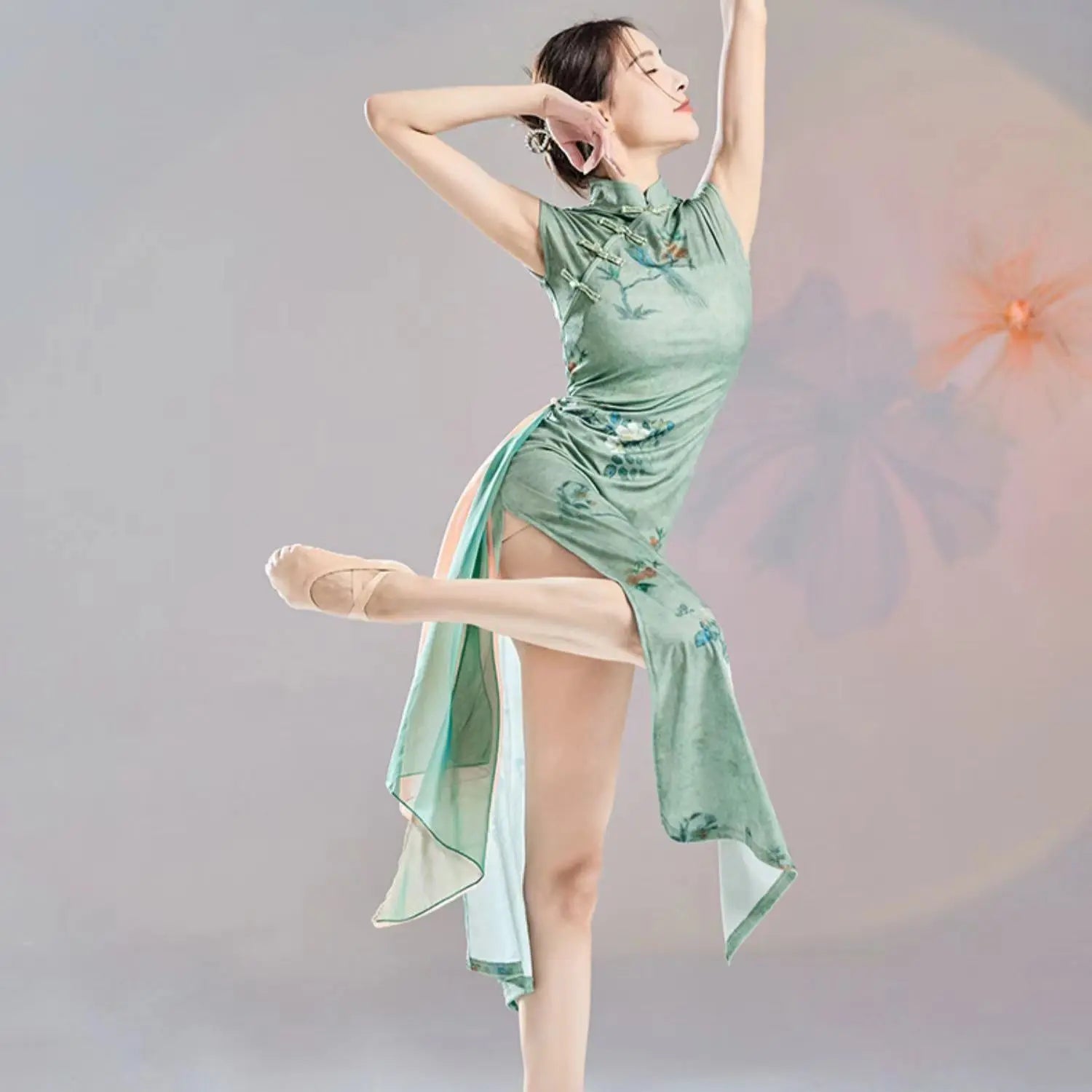 Green Chinese Cheongsam Dance Dress 2024 Modern Qipao Costume