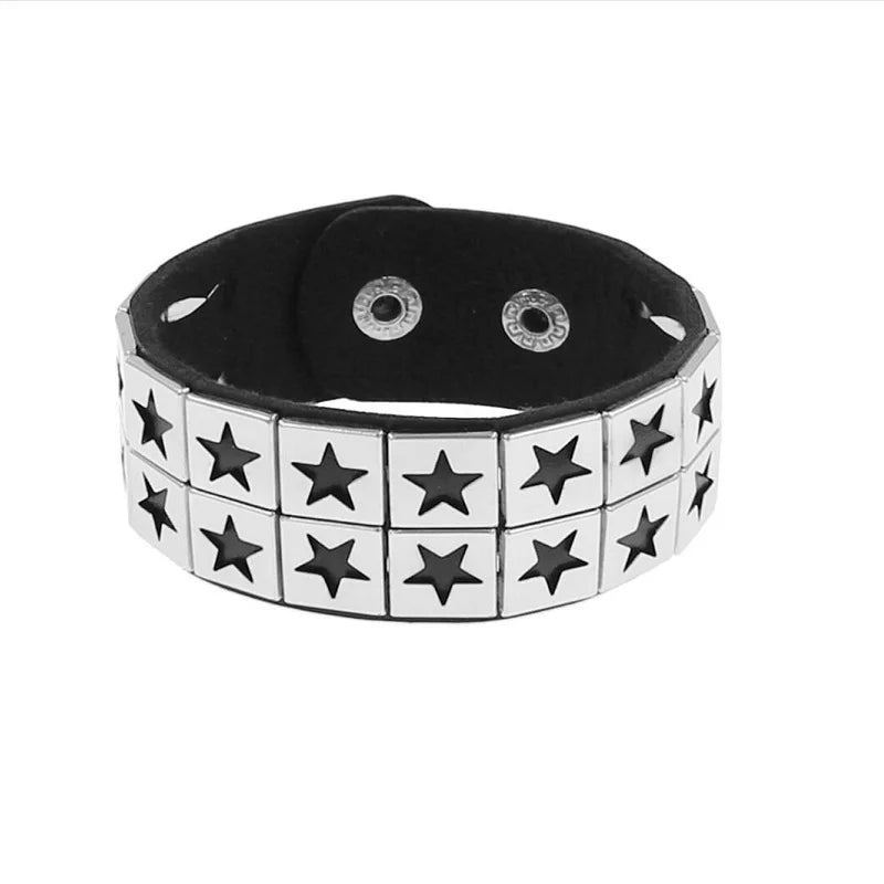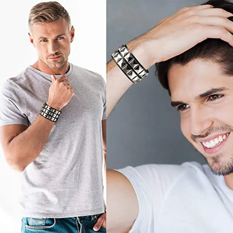 Gothic PU Leather Studded Bracelet Adjustable Spike Punk Cuff Rivet Wristband for Men Women