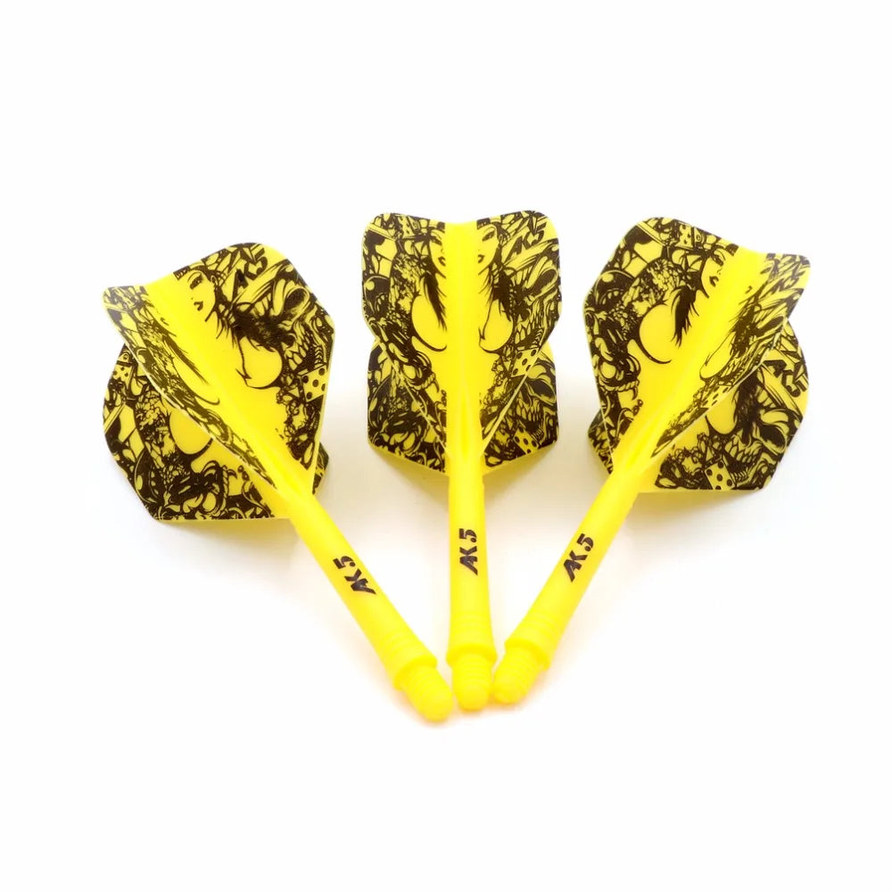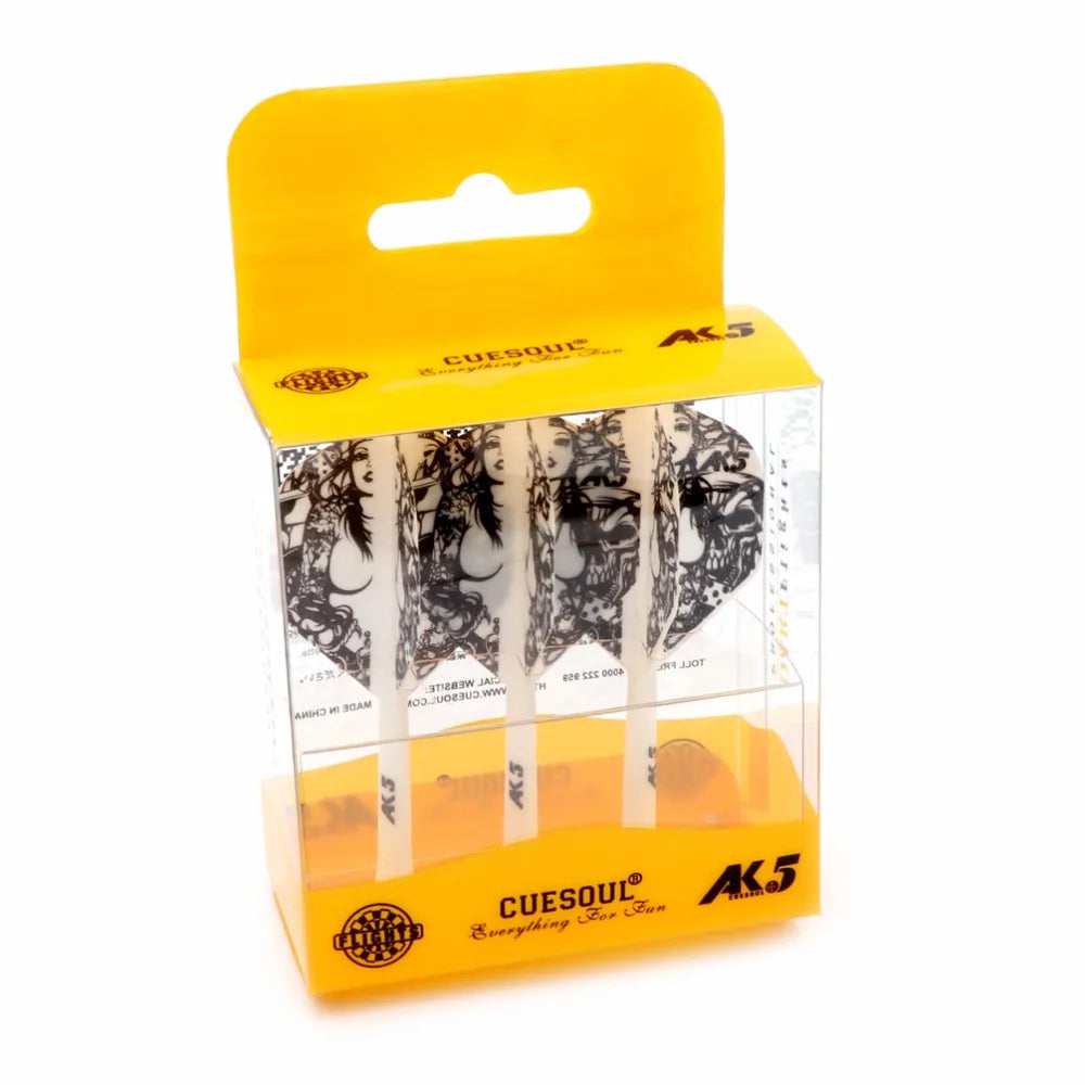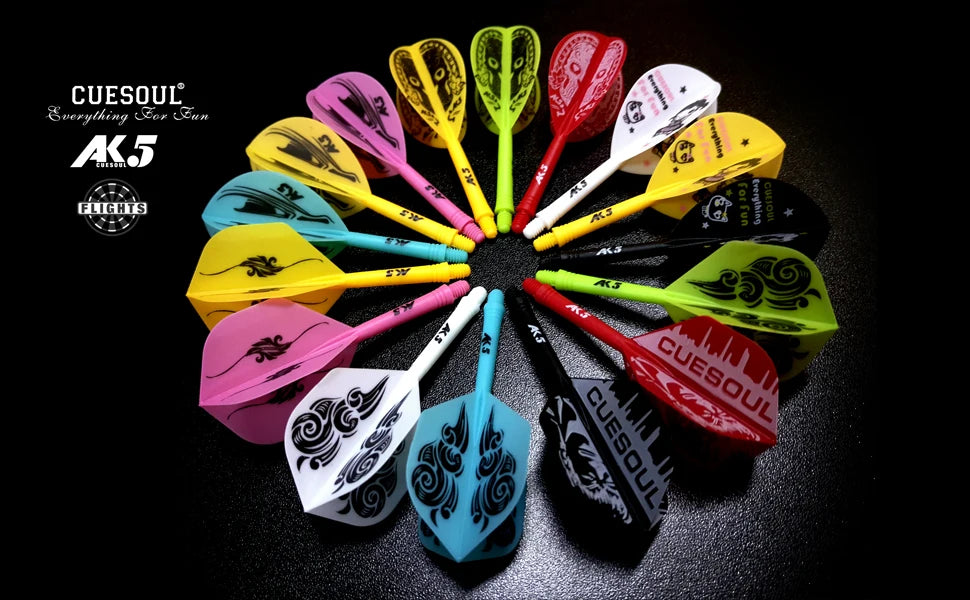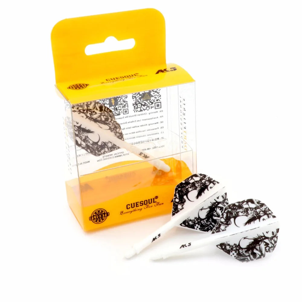 Elevate your dart game with premium dart flights designed for optimal performance and style for players aged 8 and up. These flights are crafted from a unique blend of materials, ensuring exceptional flexibility and durability, even under tough conditions. The precision-molded design maintains a perfect 90-degree angle, enhancing aerodynamic efficiency and accuracy with every throw. Available in seven vibrant colors with contemporary patterns, they add a distinctive touch to your dart set. With a 28mm shaft length from the screw edge to the joint and a total length of 69mm, these flights are perfectly sized for superior play. Elegantly encased in a crystal gift box, they're an ideal gift for any dart enthusiast.