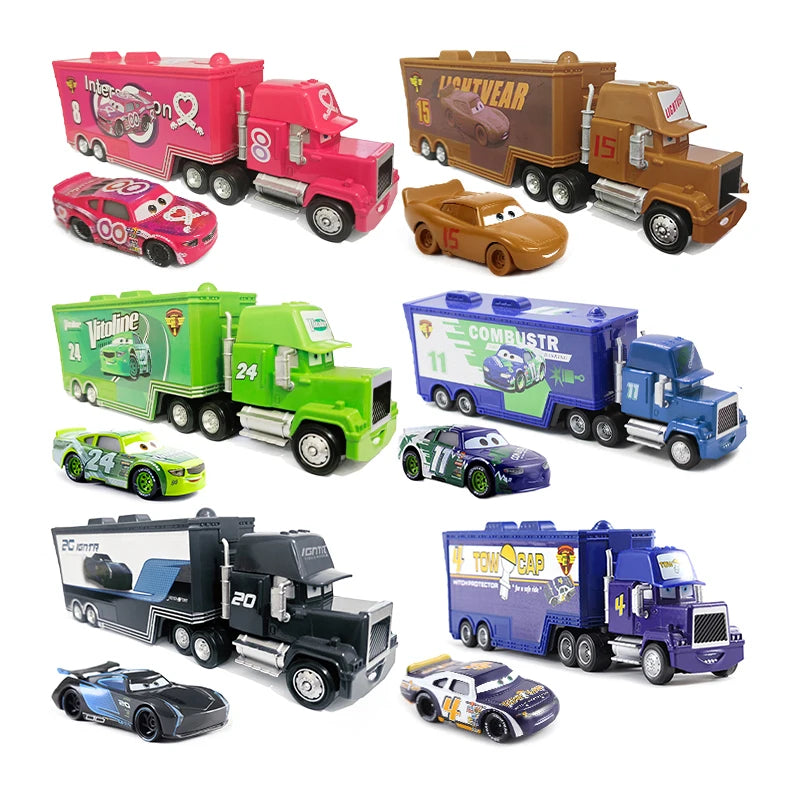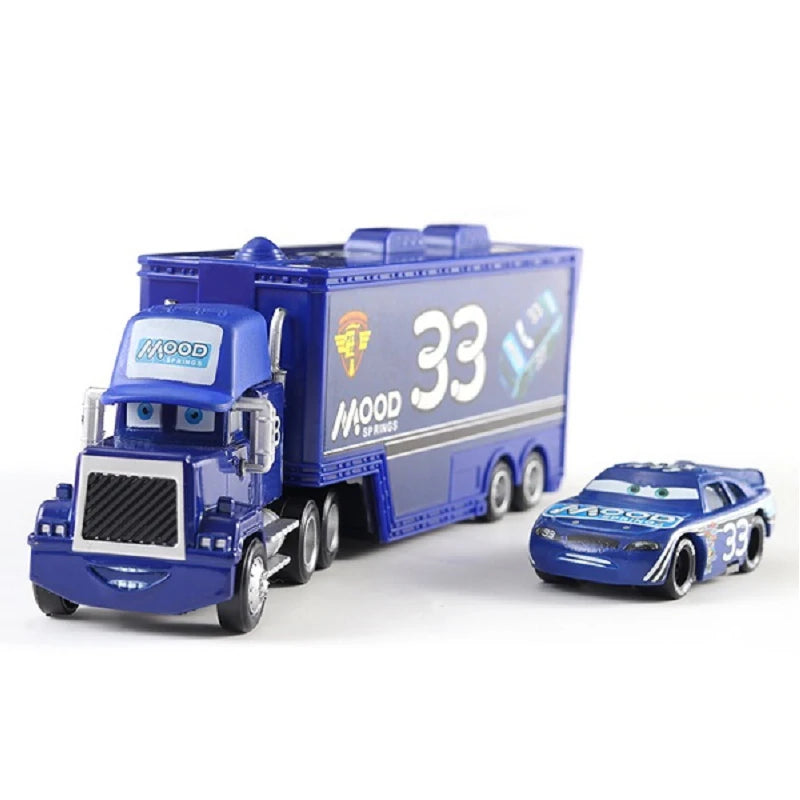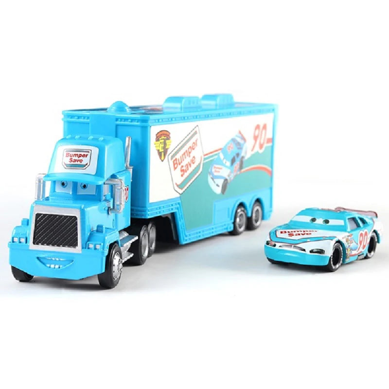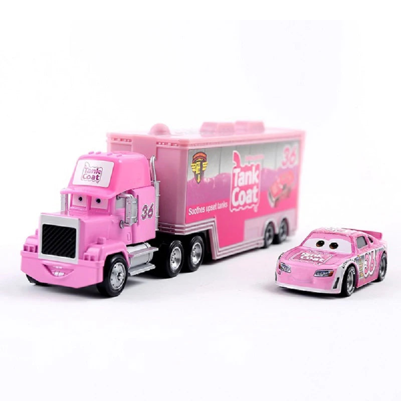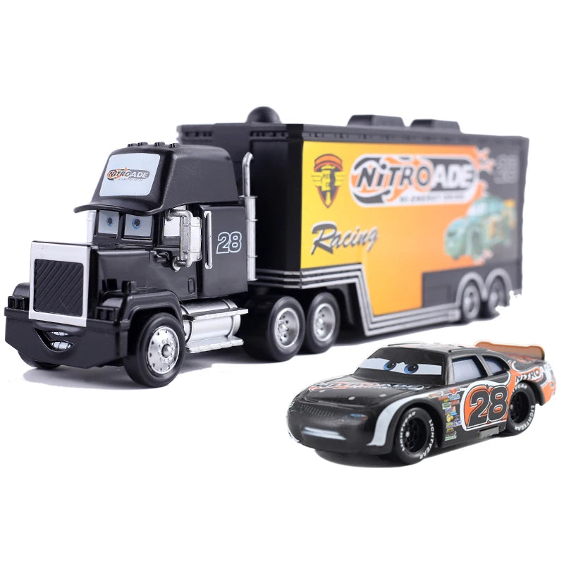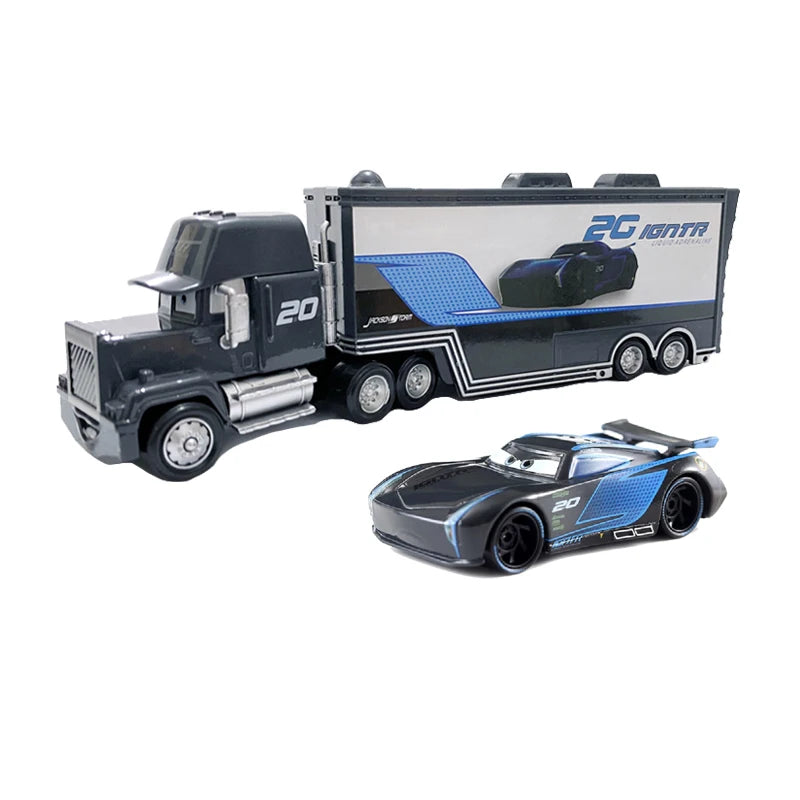 Pixar Cars 1:55 Diecast Mack Truck & Racing Cars: Lightning McQueen, Jackson Storm, Ramirez Toy Set