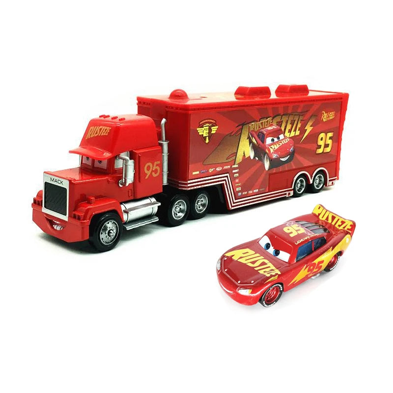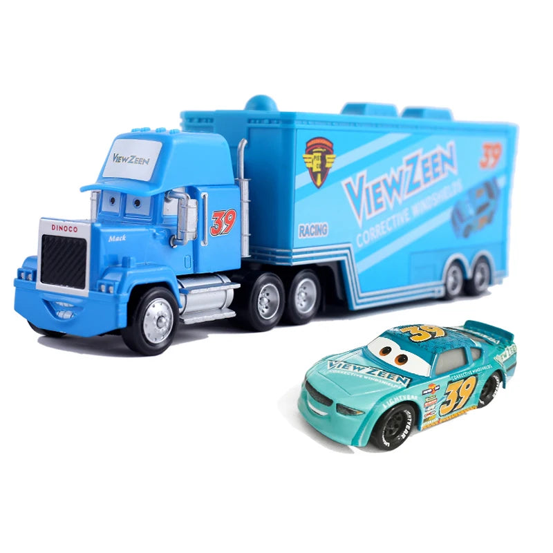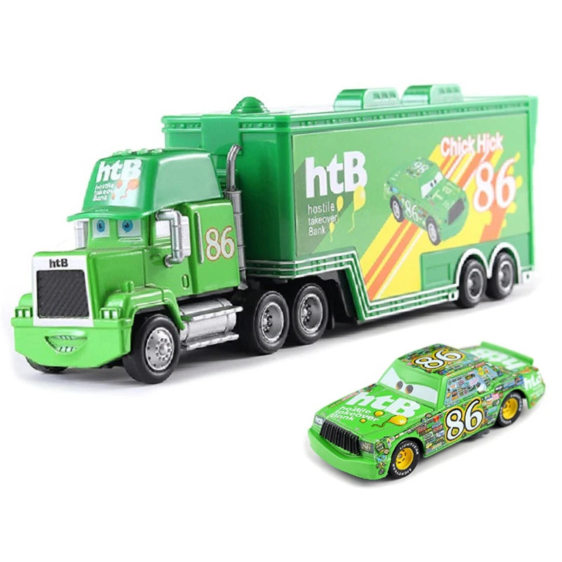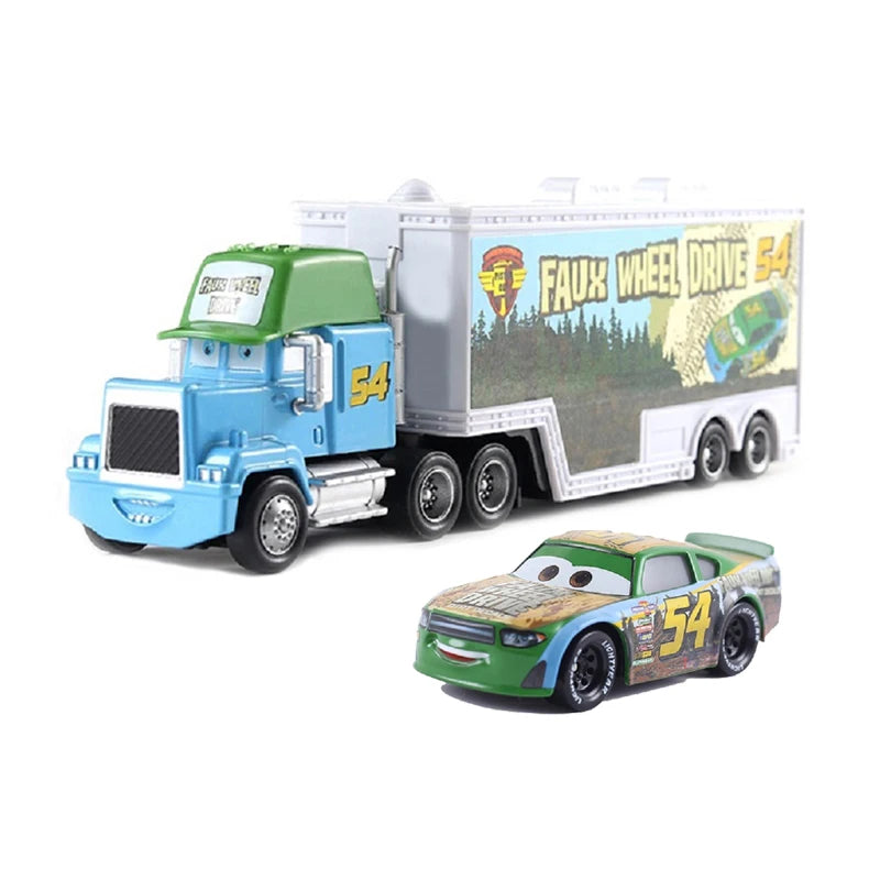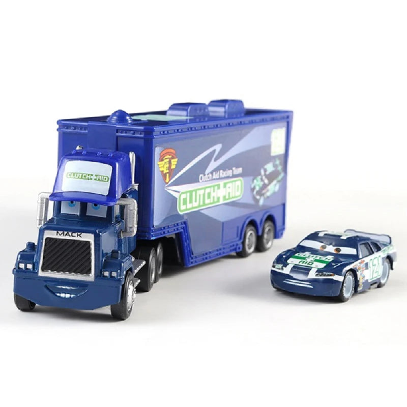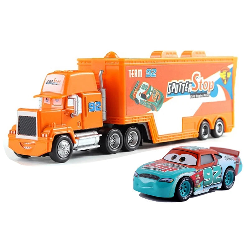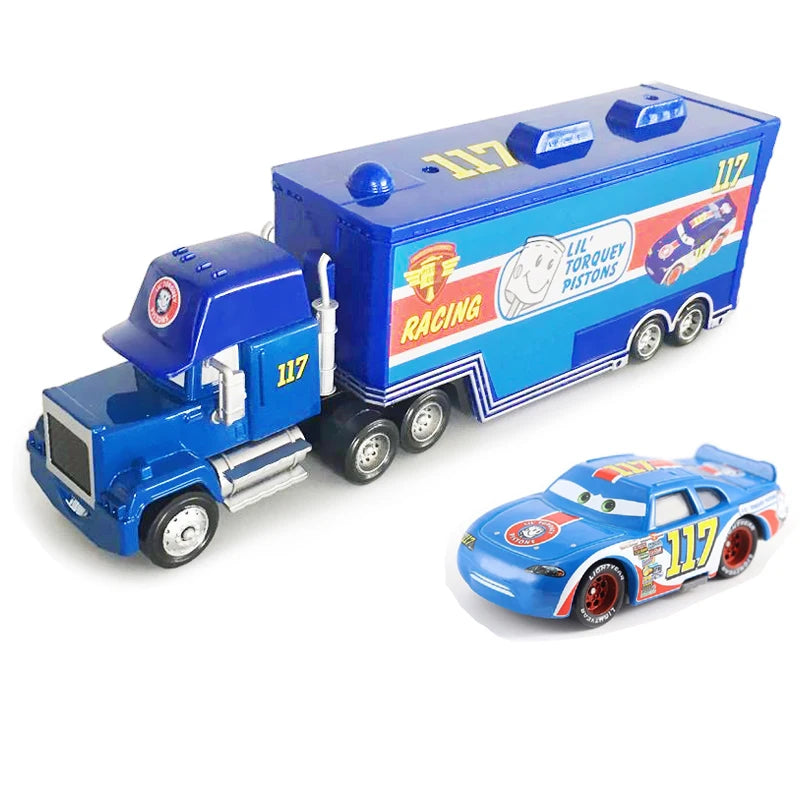 Pixar Cars 1:55 Diecast Mack Truck & Racing Cars: Lightning McQueen, Jackson Storm, Ramirez Toy Set