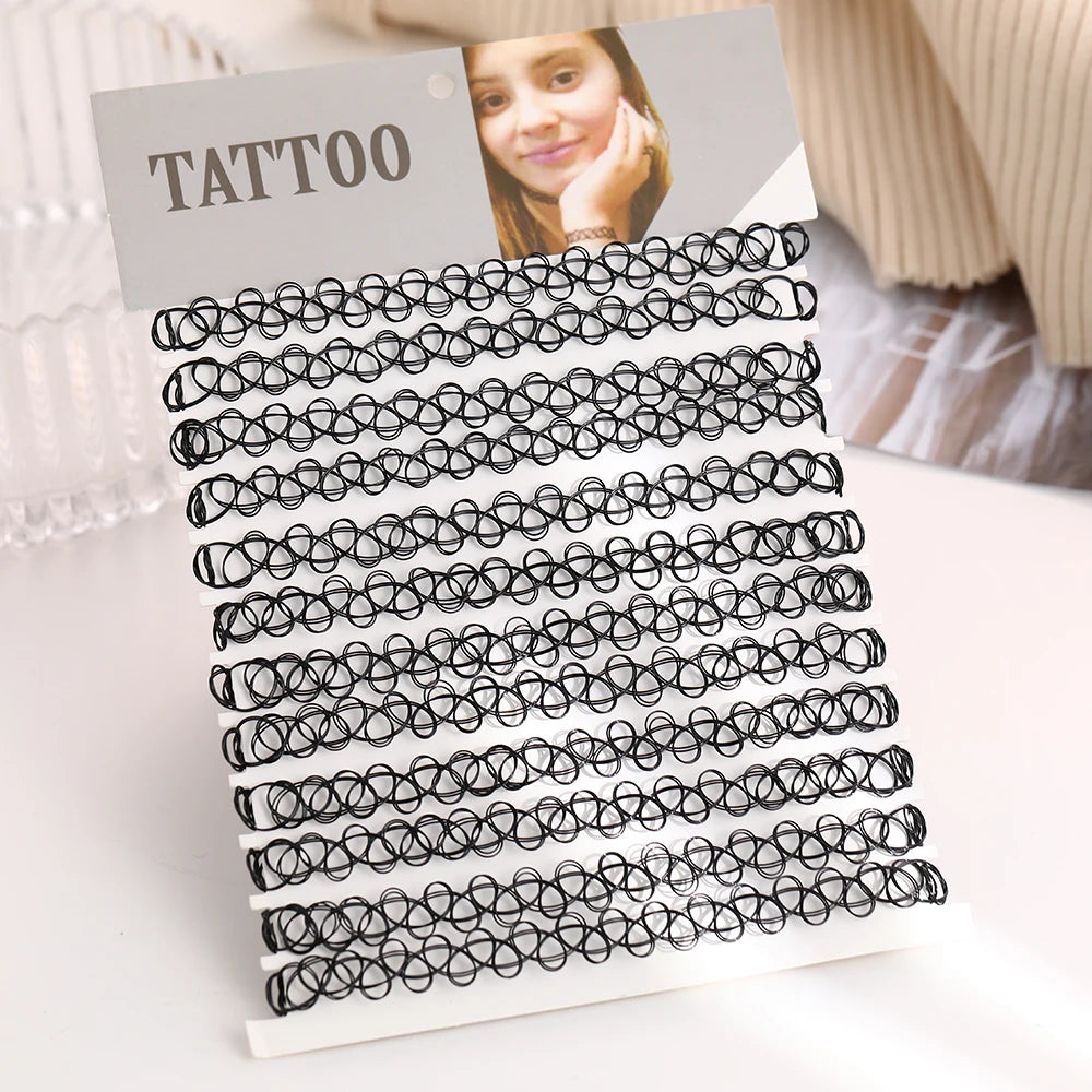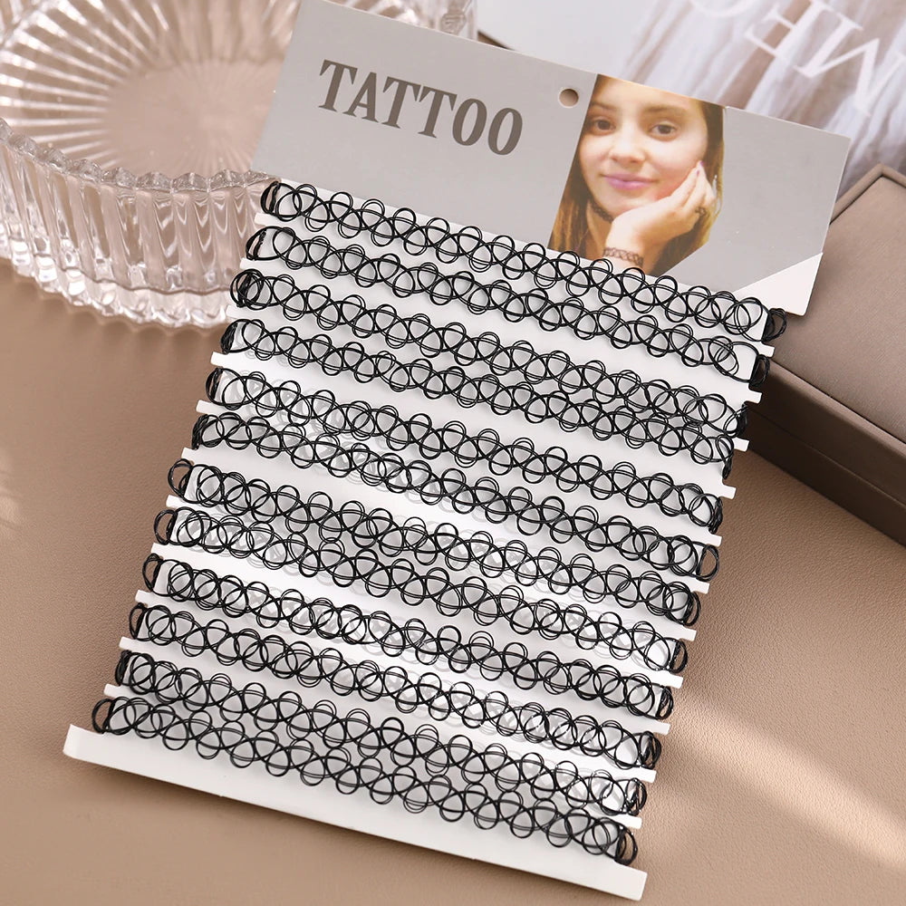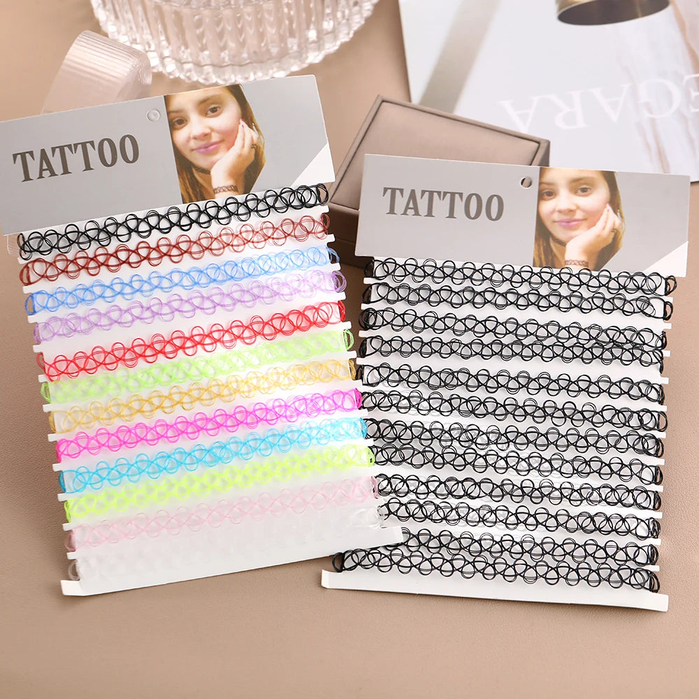 12pcs Mix Color Vintage Stretch Tattoo Choker Necklace Elastic Fishing Line Choker Jewelry