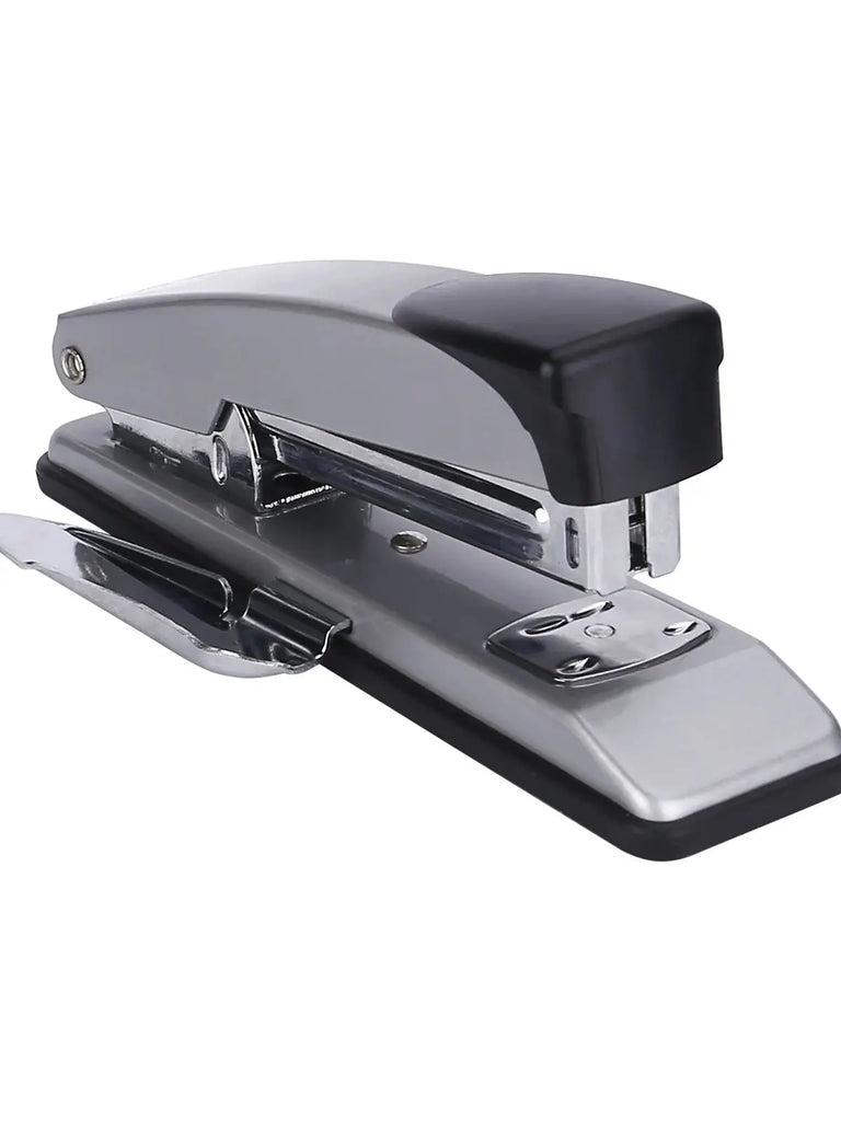 This durable metal stapler is perfect for both home and office use, offering reliable performance with its robust construction. Designed to handle up to 20 sheets at once, it features an easy-to-use manual operation. The stapler accommodates both No. 24/6 and No. 26/6 staples, with a staple capacity of 1000. Its built-in staple remover adds convenience, while the rotatable nail plate provides the flexibility to switch between temporary and permanent binding. The non-skid base ensures stability during use, enhancing your binding experience.