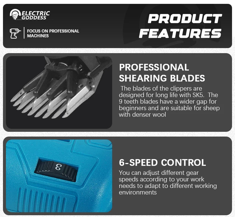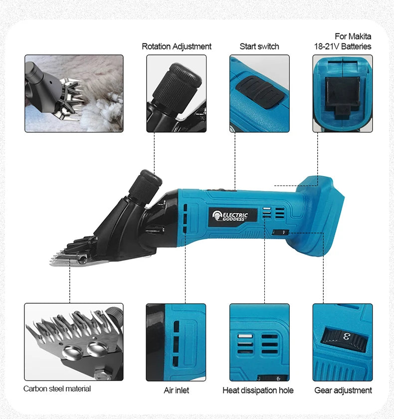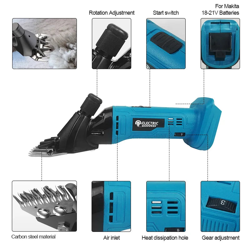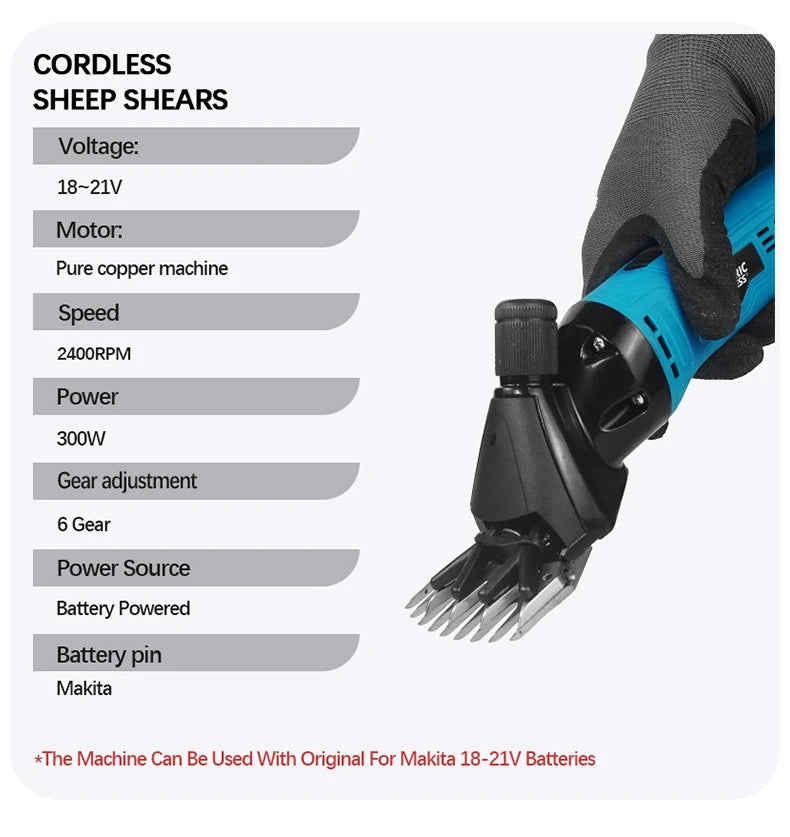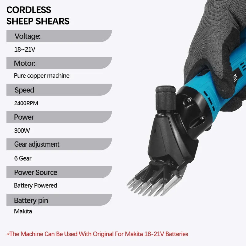 Cordless Sheep Shears 300W, Electric Wool & Horse Hair Trimmer, Compatible with 18V Battery