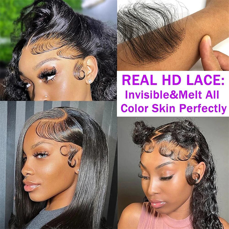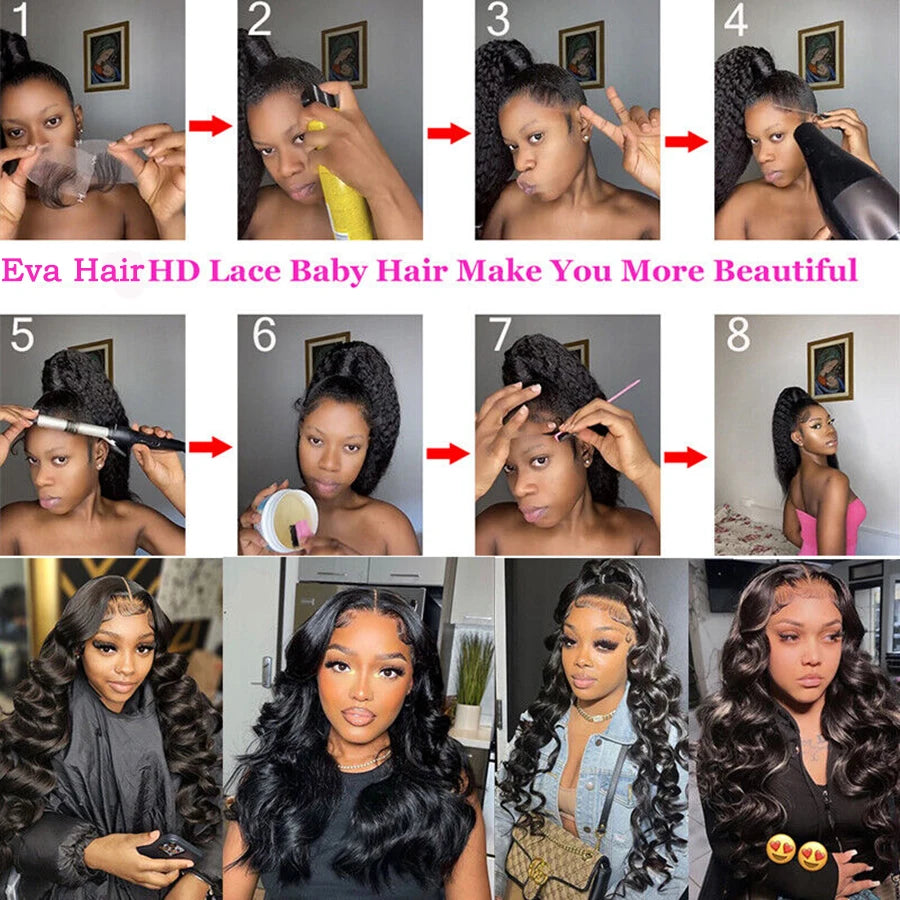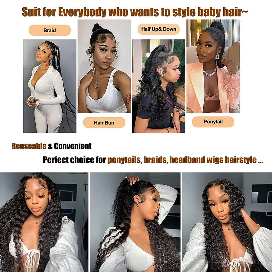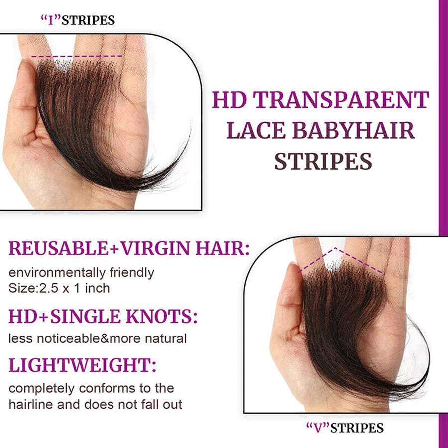 4pcs HD Lace Curly Human Baby Hair Strips for Edge Styling, Body Wave Swiss Lace Hairline