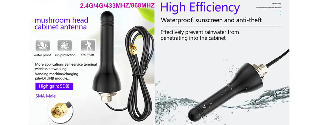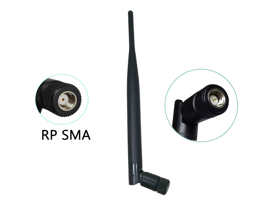 The antenna boasts a gain of 5dBi and includes a reliable SMA connector, compatible with both male and female fittings. Certified CE for quality assurance, it is free from harmful chemicals and built to withstand various environments.