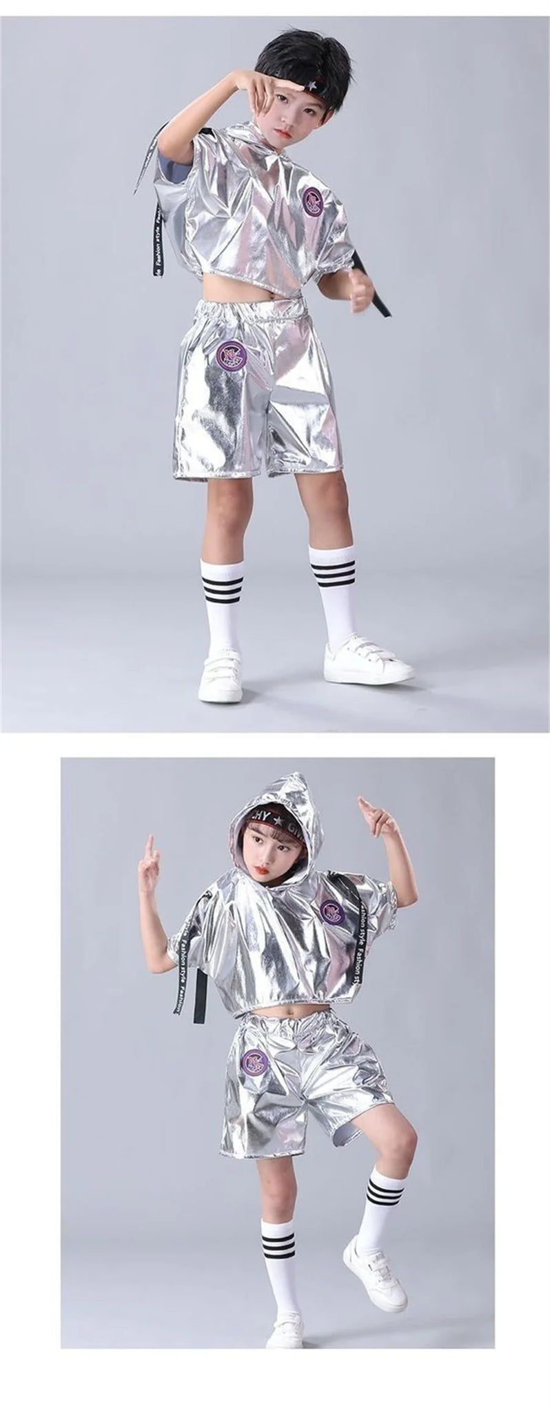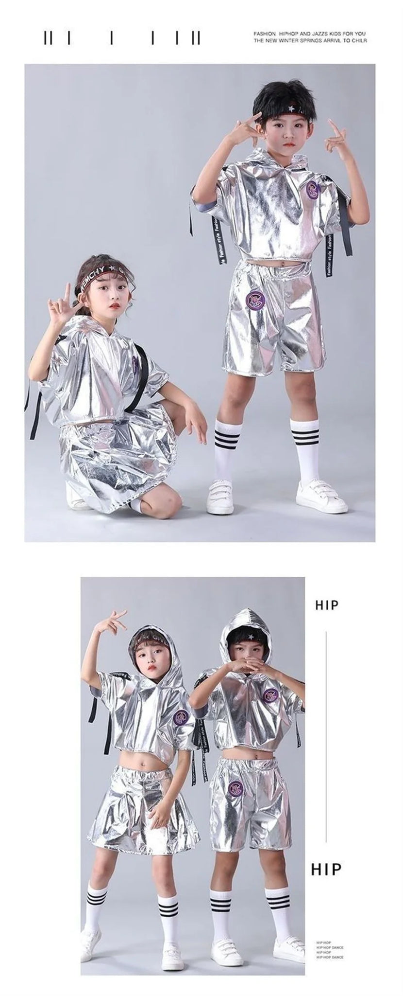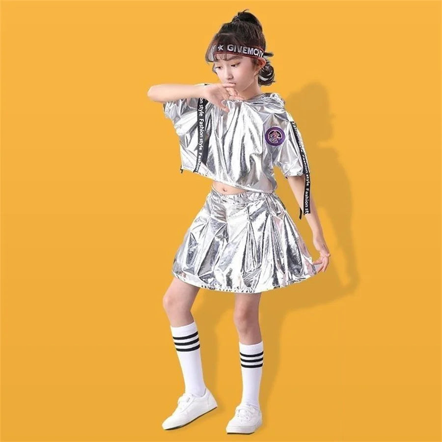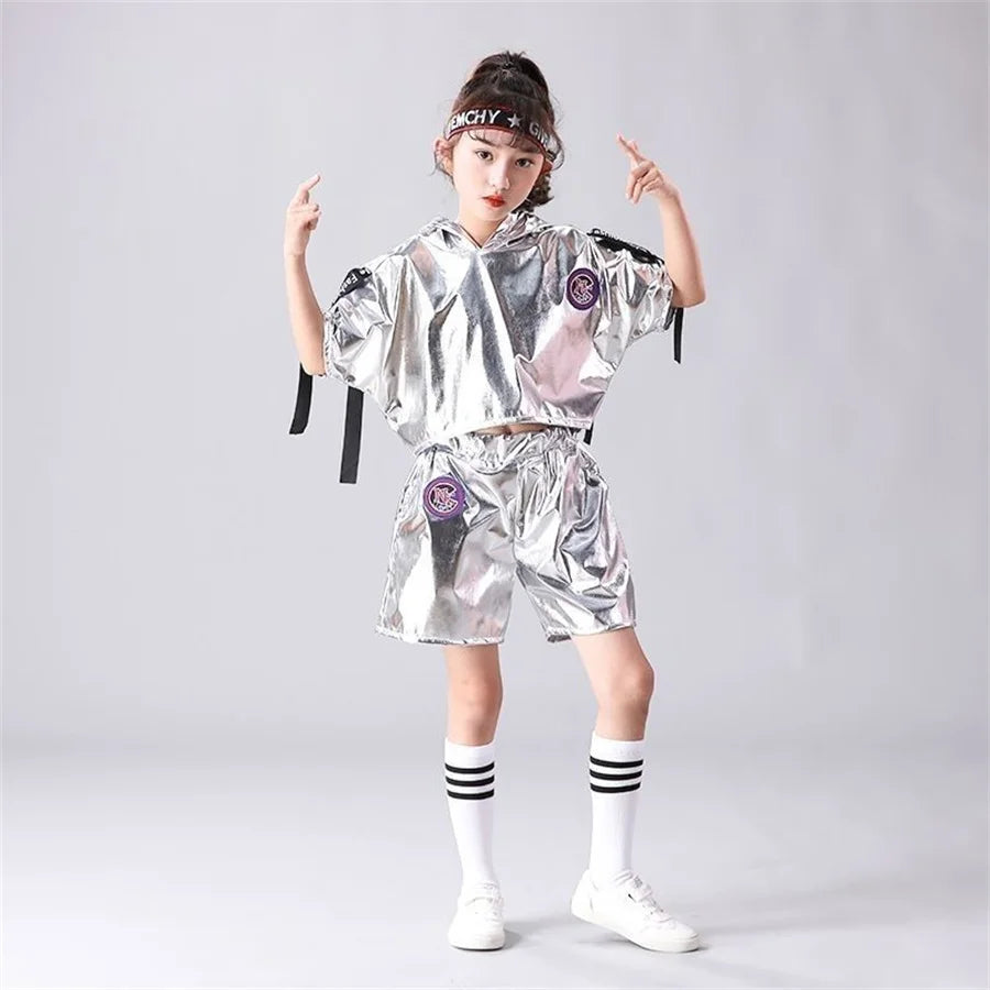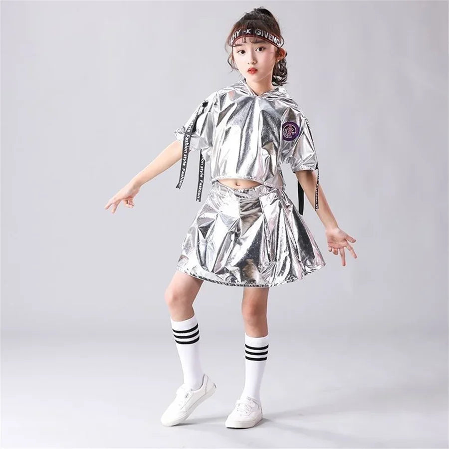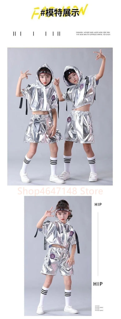 Girls' Silver Hip-Hop Jazz Dance Costume Set – Performance & Rave Outfit
