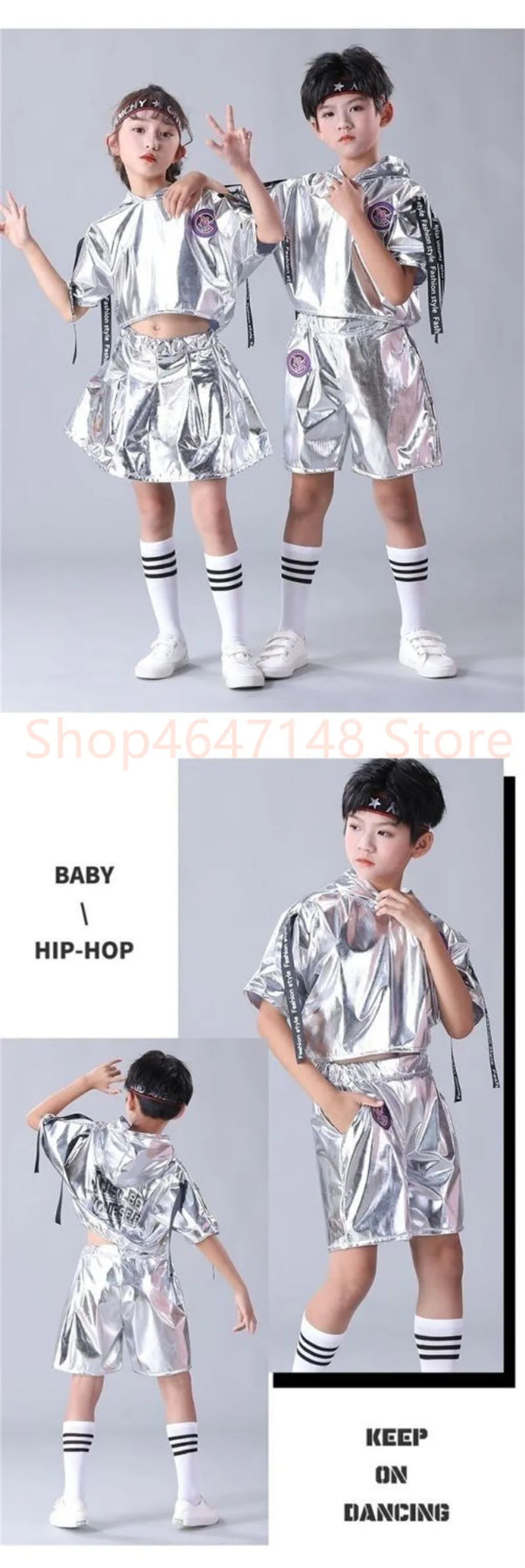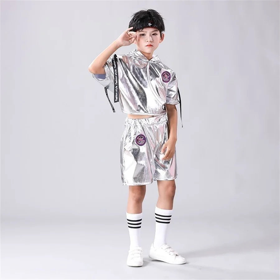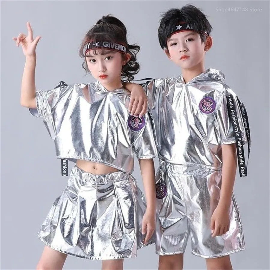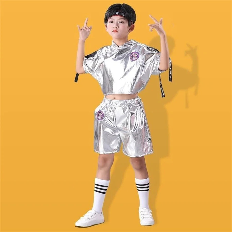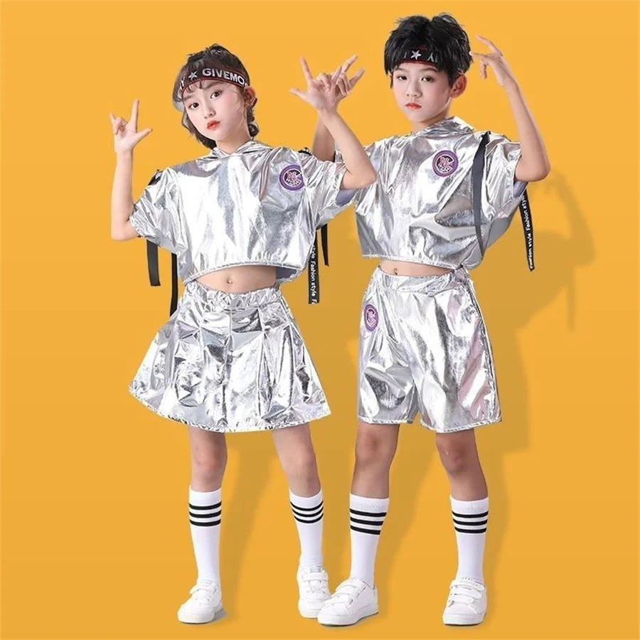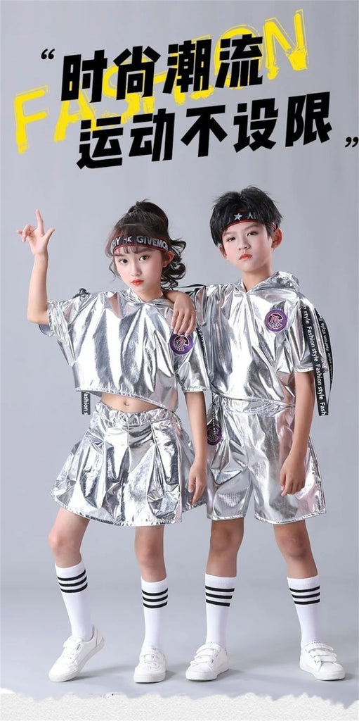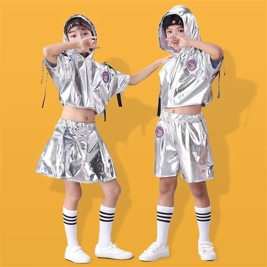 Girls' Silver Hip-Hop Jazz Dance Costume Set – Performance & Rave Outfit